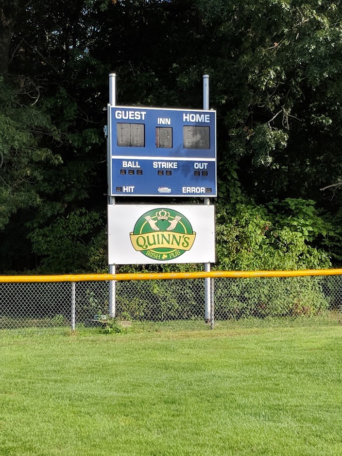 Just saw this fantastic idea for a fundraising event for Pineview Little League. Pineview plays in District 2 and is located in Pawtucket, RI. I visited Founders Field this summer and just loved the landscape of this baseball field. As I always do, I took a photo of the scoreboard sign to recognize a local sponsor. The sponsor in this case is Quinn’s Irish Pub.