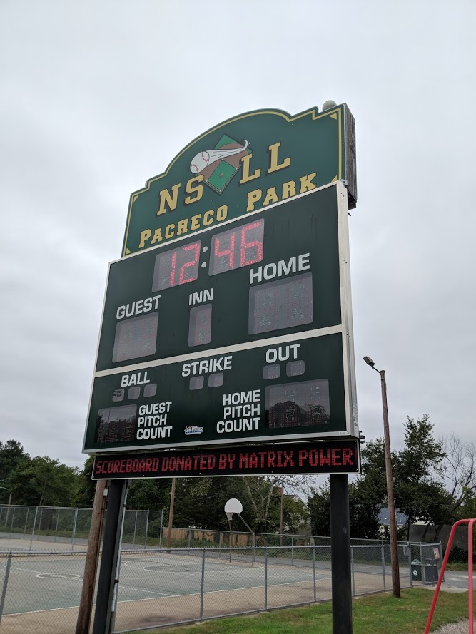 Whenever I visit baseball fields, I always look for plaques, memorials, and signage that catches my eye. At Pacheco, there was a plaque honoring Frank Meyer, III who was involved in North Smithfield Little League as a youth baseball player.