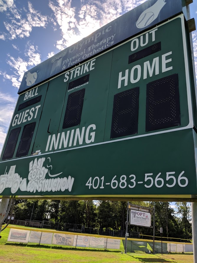 Today I will be rooting for the New England Patriots and was so thrilled to visit the baseball fields of Portsmouth Little League, home of some future Patriot players. Their baseball fields, Sherman and Rooney, are an excellent representation of all that is great about Rhode Island youth baseball. They offer plenty of seating, great local business sponsorship recognition, ready to play condition, and were just a joy to walk around and observe. And maybe one day, I will be writing about a Portsmouth Little Leaguer who became a Portsmouth Patriot baseball player. But for now, I will say Go Patriots and thank you for another great Rhode Island Baseball Experience.