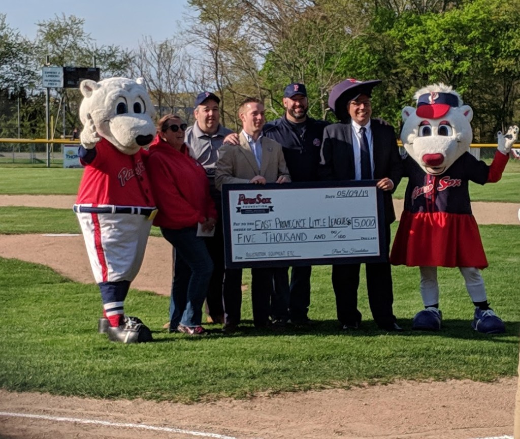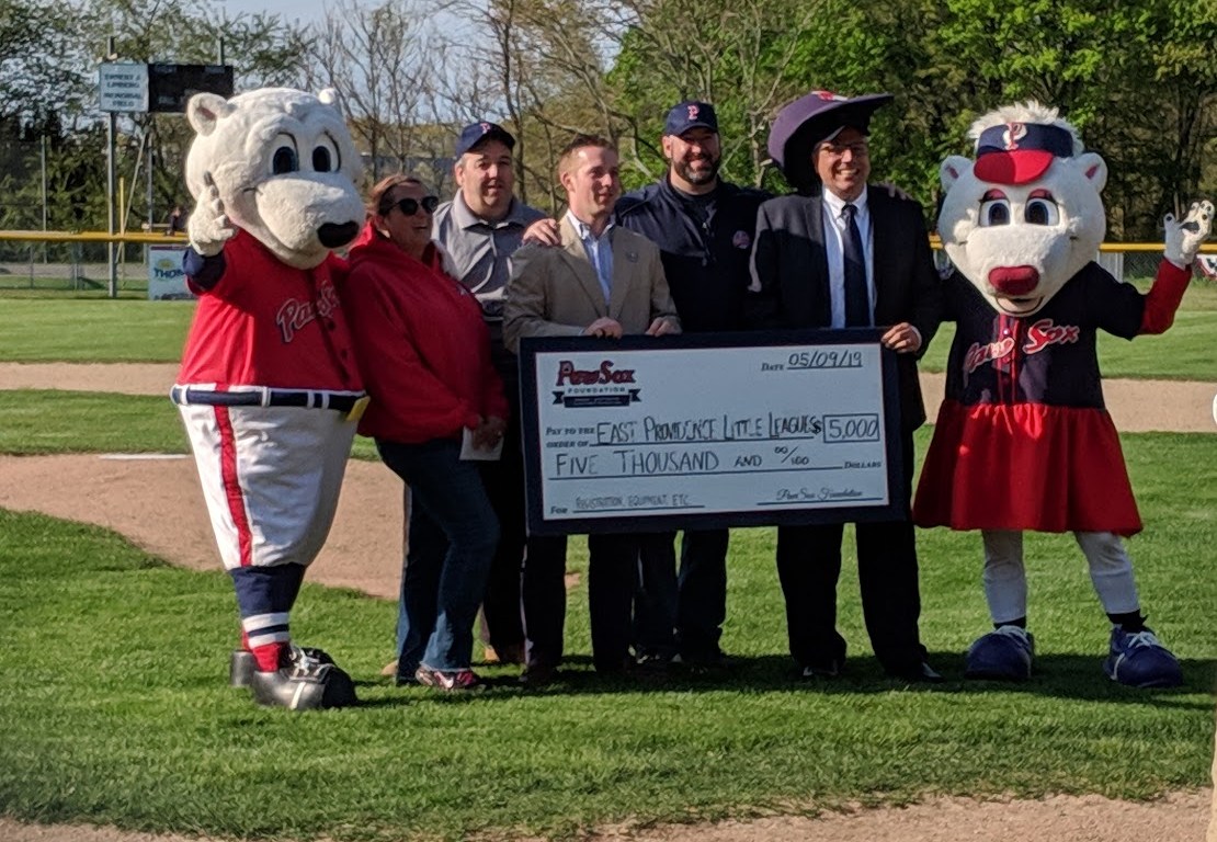 I was thrilled to attend an event last night at Kimberly Rock Athletic Fields, home to Rumford Little League. The event was organized by the City of East Providence and the Pawtucket Red Sox, and involved three local East Providence Little League organizations – Rumford, East Providence Central, and Riverside. The Pawtucket Red Sox, through their “Acts of Kindness” program, continue to support the efforts of local baseball programs that encourage youth athletes to participate and learn the game of baseball. Last night, the Pawtucket Red Sox and PawSox Foundation presented a check for $5,000 to these three East Providence Little Leagues to provide financial assistance for those families in need.