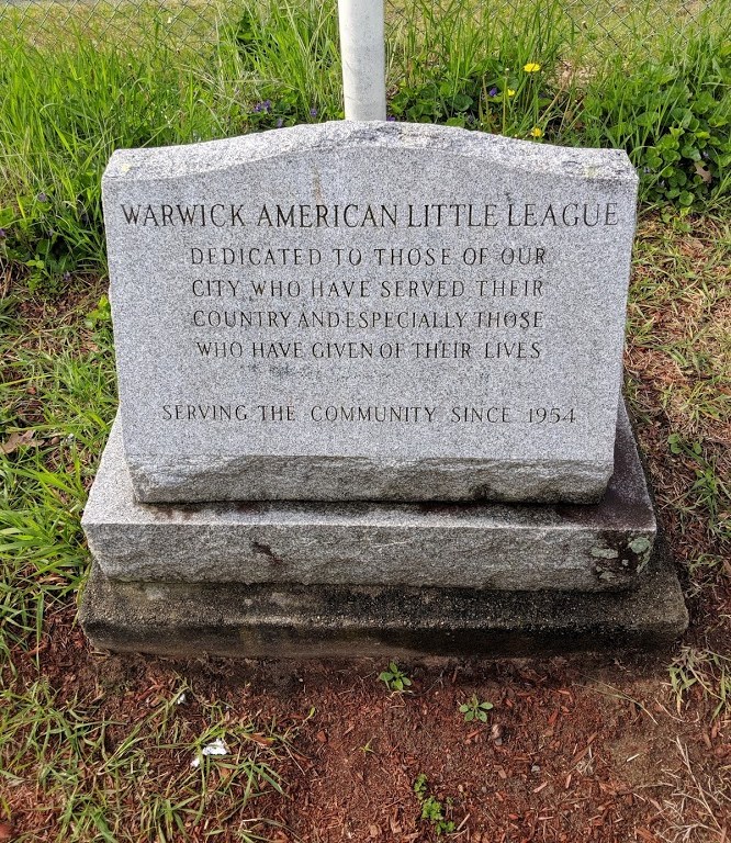 The RIBBE would like to acknowledge the memorial at Warwick’s “Libary” Field. The plaque is located in the back parking lot behind the field and is adorned by a flower garden and flags. If you are playing on this field this week, please take a moment to read the plaque and respect those who served our country.