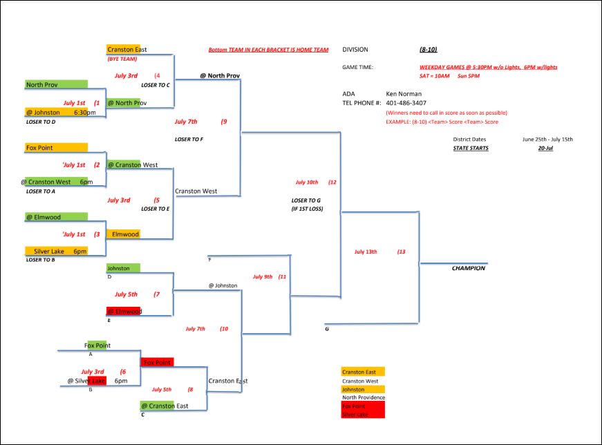 10U Division – State Tournament to be hosted by Cranston Western Little League