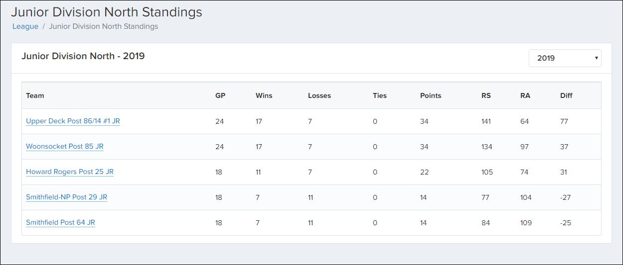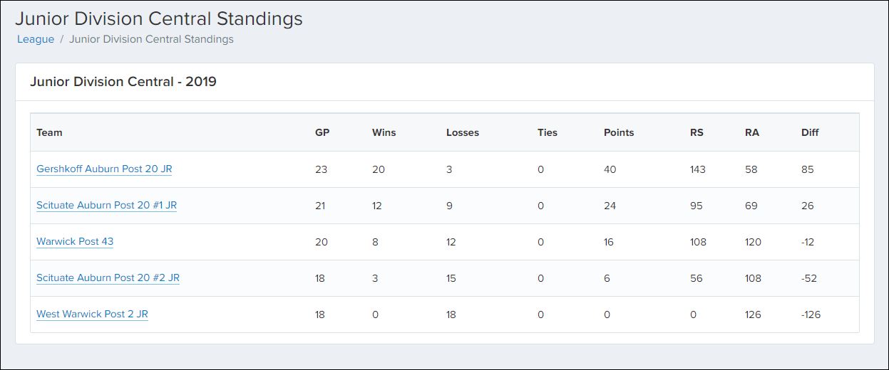 At the conclusion of the regular season, the state tournament for the Senior and Junior Divisions began. The Juniors Division Champion is Elmwood Post 20 of Cranston.