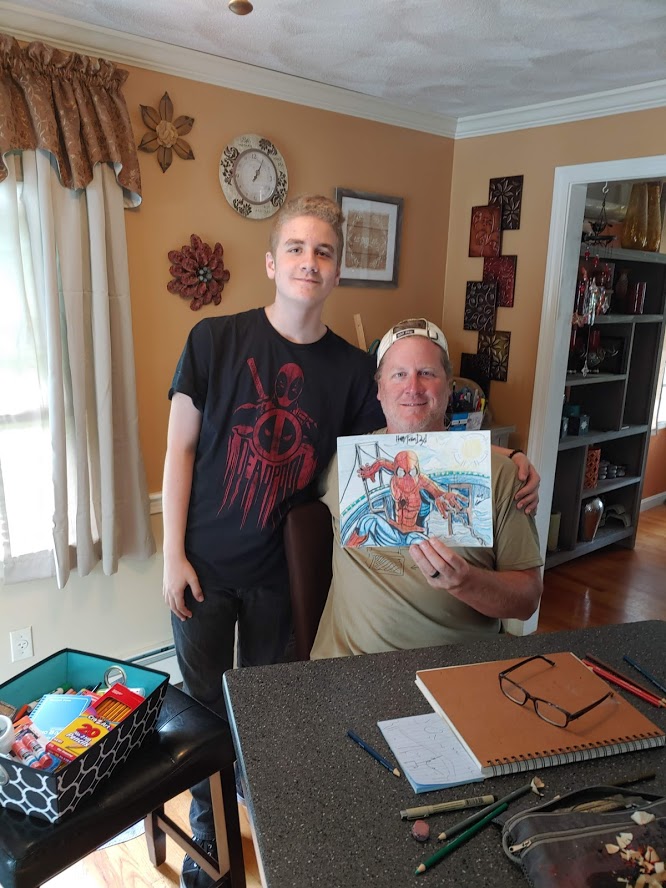 I have a much deeper appreciation for sports and cartooning due to two people – local Rhode Island cartoonist Frankie Galasso and my son Griffin. I met Frank Galasso several years ago and was honored to do some freelance writing work for Frank. Frankie’s gift is ridiculous and talented and colorful. His illustrations of New England sports, local Rhode Island treasures, and popular Rhode Island tourist attractions have been a huge hit for tourists and Rhode Islanders alike for decades. My son Griffin draws cartoons for fun but his gift is monumental. Griffey can draw superheroes, album covers, landscapes – all free hand and all amazing. He recently won a scholastic award for his illustrations and the sky is the limit for him.