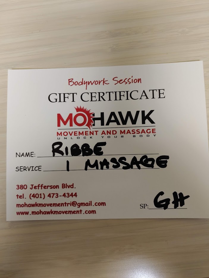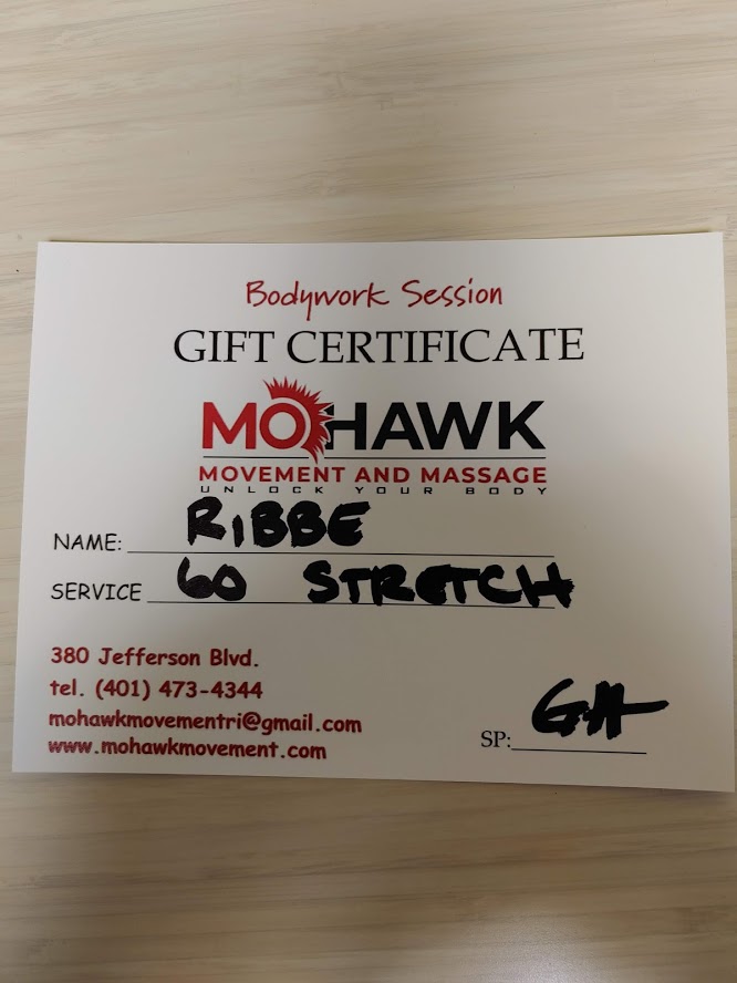 Gary was kind enough to give me a few gift certificates for Mohawk Movement and Massage. I have a 60 minute Stretch, similar to what I had done. And I have a massage certificate as well. I am giving them away to any Rhode Island baseball volunteer, parent, coach, or player who has gone above and beyond for his/her fellow league or community. Nominate someone and I will put them into consideration for these gift certificates. Thank you to Gary Howard and Mohawk Movement & Massage for this very generous donation.