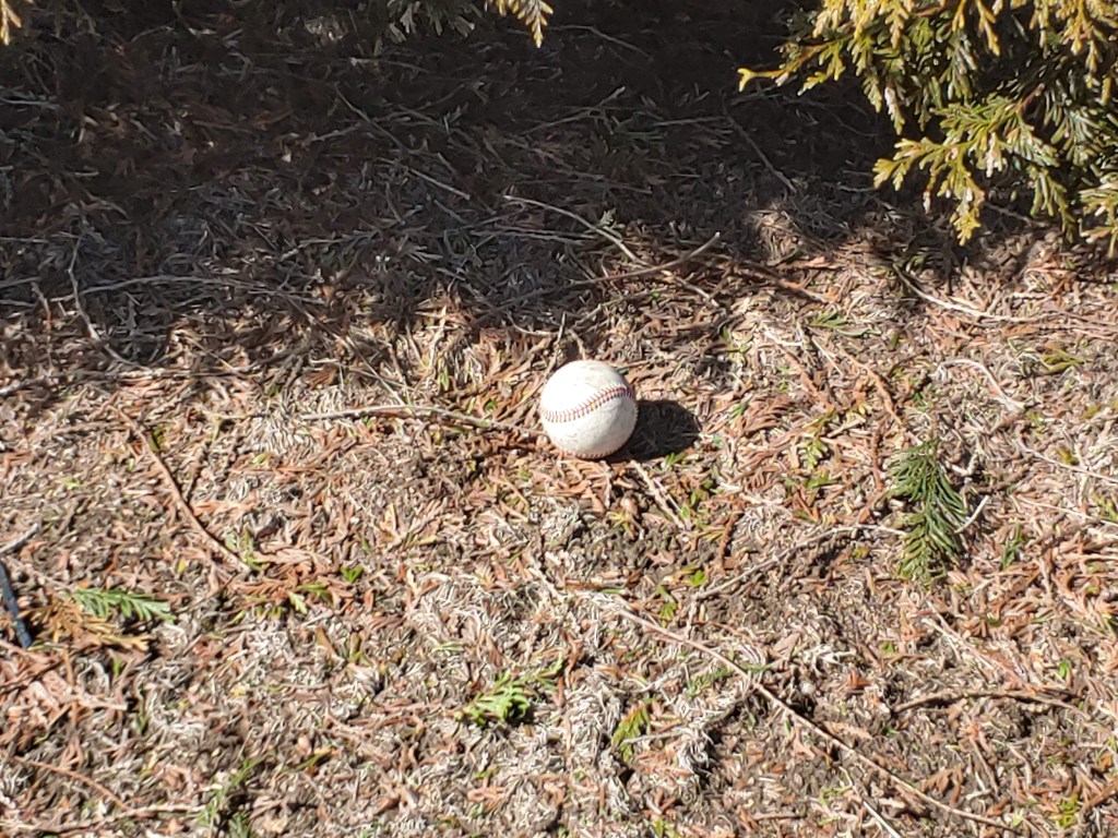 One of the things I love about visiting baseball fields is walking the perimeter outside of the fenced area of the outfield. This centerfield view of the field gives me a lot of perspective as to how big the park is. And I always look for baseballs outside the fenced in area and wonder who may have hit this, what did their swing look like, what was the emotion of the team and the player. This particular baseball was found in the trees (I knocked it off a branch) some 400 plus feet away from home plate. Quite a shot and it must have been an awesome experience to hit it, watch it, and be in that moment.