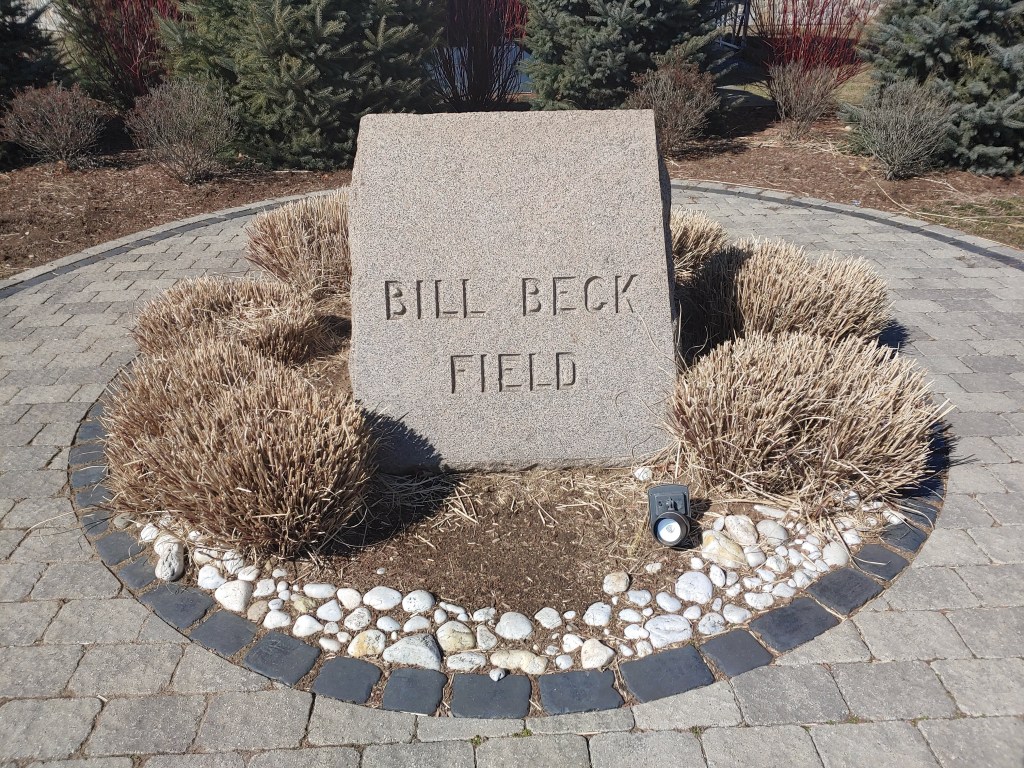 Bill Beck Field stone monument is at the opening of the field entrance.