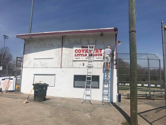 Coventry Little League “A wonderful group of Home Depot employees and a few CLL Board members took time out of work to volunteer to better our main fields at Paine Field. Not to mention it was a hot week and that week and no one complained! New floor for press box, painted dugouts along with new roofs.”