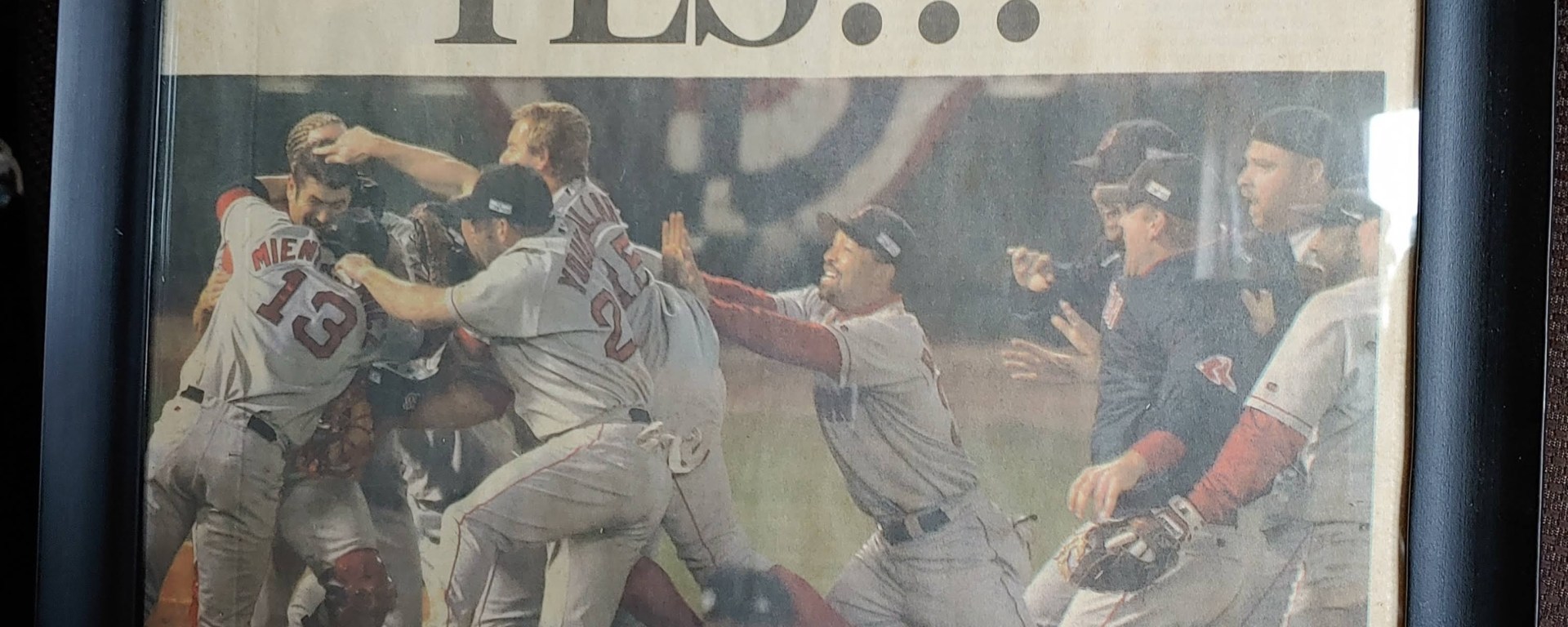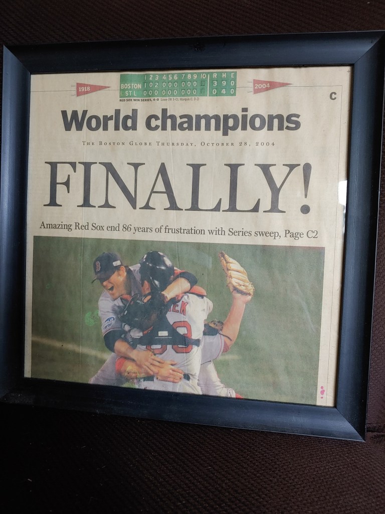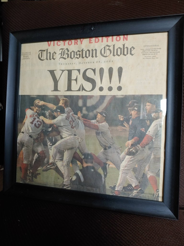 Game 4 was a very close, stressful, intense baseball game. Both teams played well and lead changes were almost inning to inning. Fast forward to the bottom of the ninth, last at bats for the Boston Red Sox down 4-3 against arguably one of the 20 best pitchers of all time. Mariano Rivera needed just 3 outs to send the Yankees to yet another World Series. Boston stayed calm throughout as Red Sox Nation paced and bit their fingernails and gulped and gasped with every pitch. Kevin Millar drew a walk and was replaced by pitch runner Dave Roberts. Roberts took his lead, sprinted to second, and slid in safe – and the Boston Red Sox crowd of fans (living and dead) went absolutely berserk. Roberts would score to tie the game. I actually stood up and fist pumped the air watching a game that was played 16 years ago and shouted “Yeah, let’s go!” As if I was watching the actual game – what a fool I am.