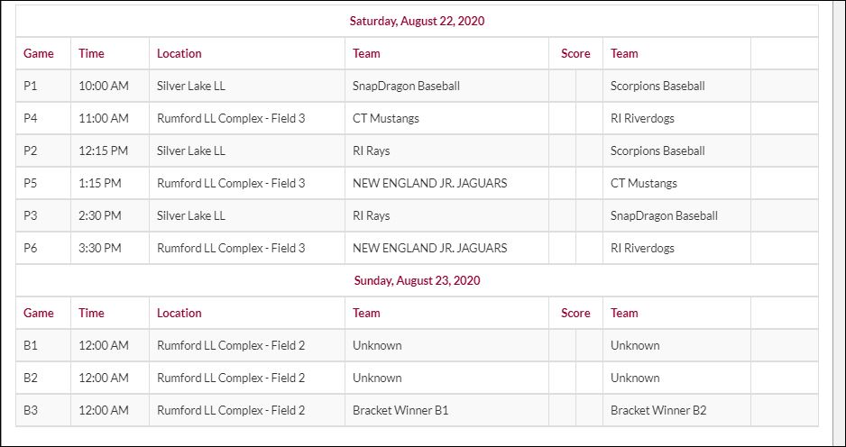 You can follow along with the brackets for your team by going to www.neaaubaseball.org, and searching for the Summer League playoffs page. Good luck to all the players, coaches, and families playing the 2020 RI/CT AAU Summer League playoffs. See you at the ball fields.