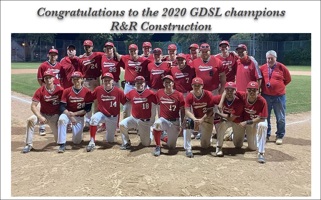 Sharing the famed Cardines Field in Newport with the Newport Collegiate Baseball League, as well as sharing players, the Sunset League teams logged about 15 regular season games this summer, then onto the playoffs. In the end, R&R Construction won the 2020 Sunset League Championship. Here is a team photo, courtesy of the official website for the George Donnelly Sunset League – www.gdsunsetleague.com.