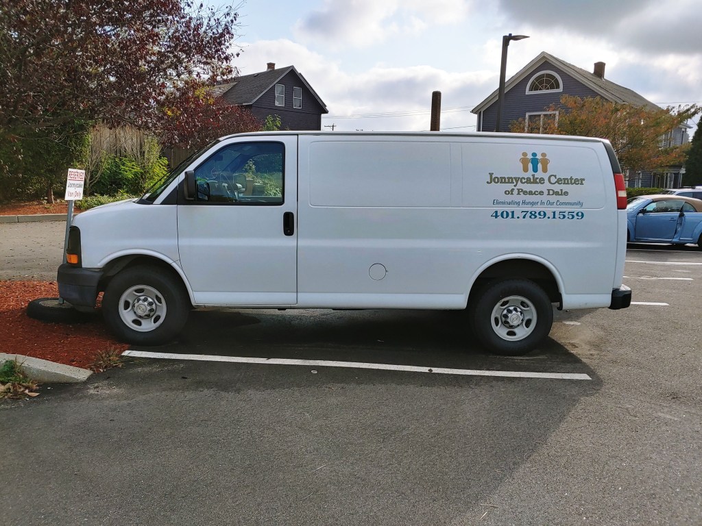 Yesterday, on a very seasonably warm morning for October, I rode what I would call Stage 1 of my upcoming charity ride. This ride took me from Old Mountain Field, the start of my ride, down Kingstown Rd, past Whalers Brewery, and onto the South County Bike Path. On the bike path, I passed the Jonnycake Center of Peace Dale and stopped to take a photo of one of their service vans.