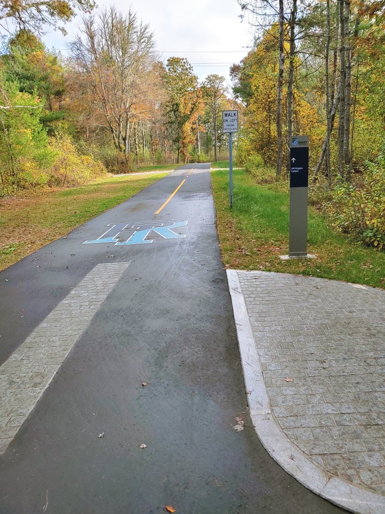 From there, I followed the bike path through Wakefield and into the Kingston section, stopping to take a photo of the new access road/path to the University of Rhode Island. I recently visited URI’s baseball practice and (fingers crossed) this will be a convenient road for me in the spring time to catch a game there at Bill Beck Field.
