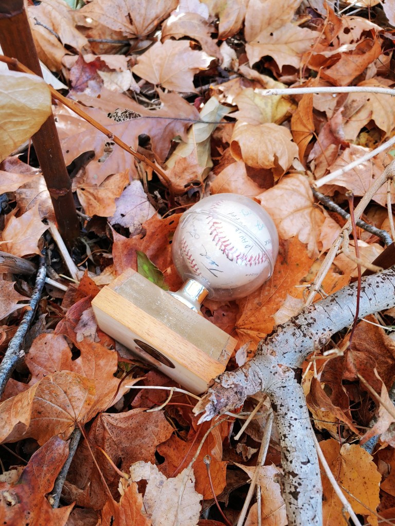 Noel began to place the once lost, now recovered items one by one back inside the hidden compartment, starting with the Granny Hamner card. Then the coin, the four leaf clover from the cute girl, the ticket stub from the Sandy Koufax no-hitter, the Wilma Briggs baseball card, the Billy Almon baseball card, then the Pawtucket Red Sox ticket stub. Pausing and viewing the items with a smile and a deep exhale, Noel relived the wonderful memories that each represented. “Can I have the screw and the tool please?” Noel pointed to Tyler’s sweatshirt pouch. Tyler reached in and handed Noel the tiny screw and the tiny screwdriver, at which time Noel placed the wooden cover over the base’s bottom and began to secure it with the screw. Turning the screw gently not to cause any damage, Noel rotated his fingers slowly until the screw was snug enough to do its job. He then turned the case upright and placed it into the cardboard box. At that moment, TJ, who was reading the back of the Hank Aaron card, realized that Noel had forgotten one item. The item in his hand, the 1957 Hank Aaron card which he had just been told was very, very special to Noel. The item he had so cleverly hid behind the Granny Hamner card. The big reveal. “You forgot this one, Noel” TJ held out the Hank Aaron card.
