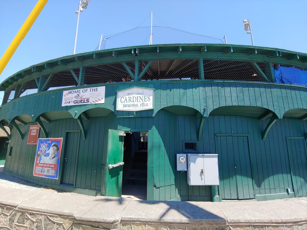 When I pulled up to Vernon Park, I was immediately struck by the incredible stone structure located on the lawn behind home plate. So unique, so historical (perhaps), so Newport indeed. The gates to the park were open, so I made my way over to Cottrell Baseball Field and took in the expanse of Vernon Park. Located just passed the centerfield area were tennis courts and folks playing Pickleball. There was a playground located next to the tennis courts and easy street access to the park as well. Huge cherry trees lined the perimeter of the baseball field. I couldn’t help but happily think these massive trees could somehow play a role in the outcome of a play, say a high fly ball to right field, otherwise catchable, but perhaps caught up in the limbs of one of these majestic cherry trees. How Mother Nature may give a struggling batter another chance at a base hit in an important game.