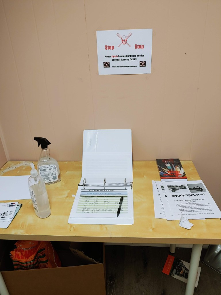 John and I connected recently when I was working on a story on Coventry’s Leah Lapham (The RIBBE Meets The Lapham Family of Coventry Baseball) and I asked him about stopping by Moe Joe. He mentioned that the facility had been upgraded and so I was eager to stop by. When I walked into the facility, there is a sign in sheet and sanitizing station. Moe Joe’s logo with the word “Stop” got my attention for sure.