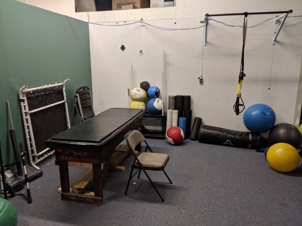 Entering to the right, I walked in and immediately noticed a ton of upgrades. The waiting area is now much larger, has indoor turf, bleacher seating, and a great view of the baseball training area. To the right of the bleachers is a strength training area with squat rack, free weights, plyometric boxes, pull-up station, kettlebells, and workout bands. Just above the fitness area is a row of championship trophies Moe Joe Baseball has won over the last 5 years.