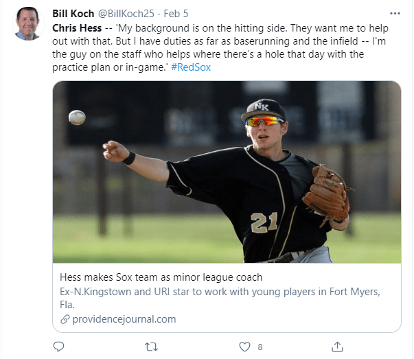 Every day on the social media pages of the Rhode Island baseball community, I learn something new. League updates, facilities offering clinics, proud parent moments, fans posting interesting stories, updates on league registrations, and photos/videos of indoor baseball training. Here are a few that caught my attention this past week: