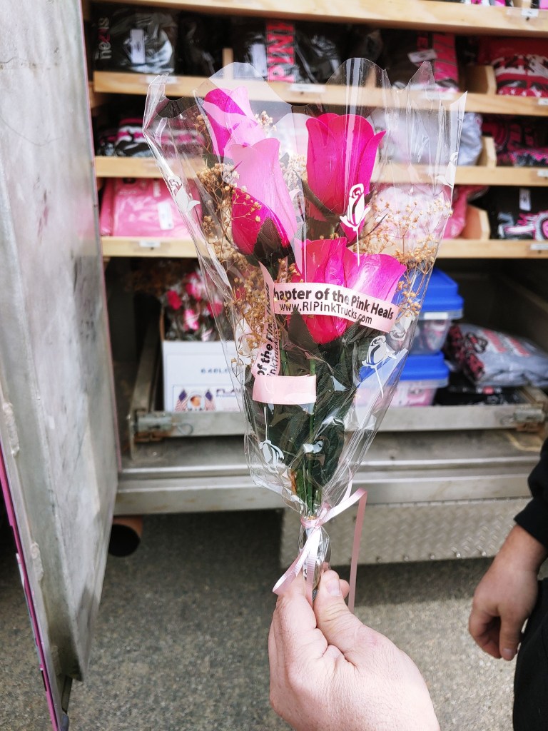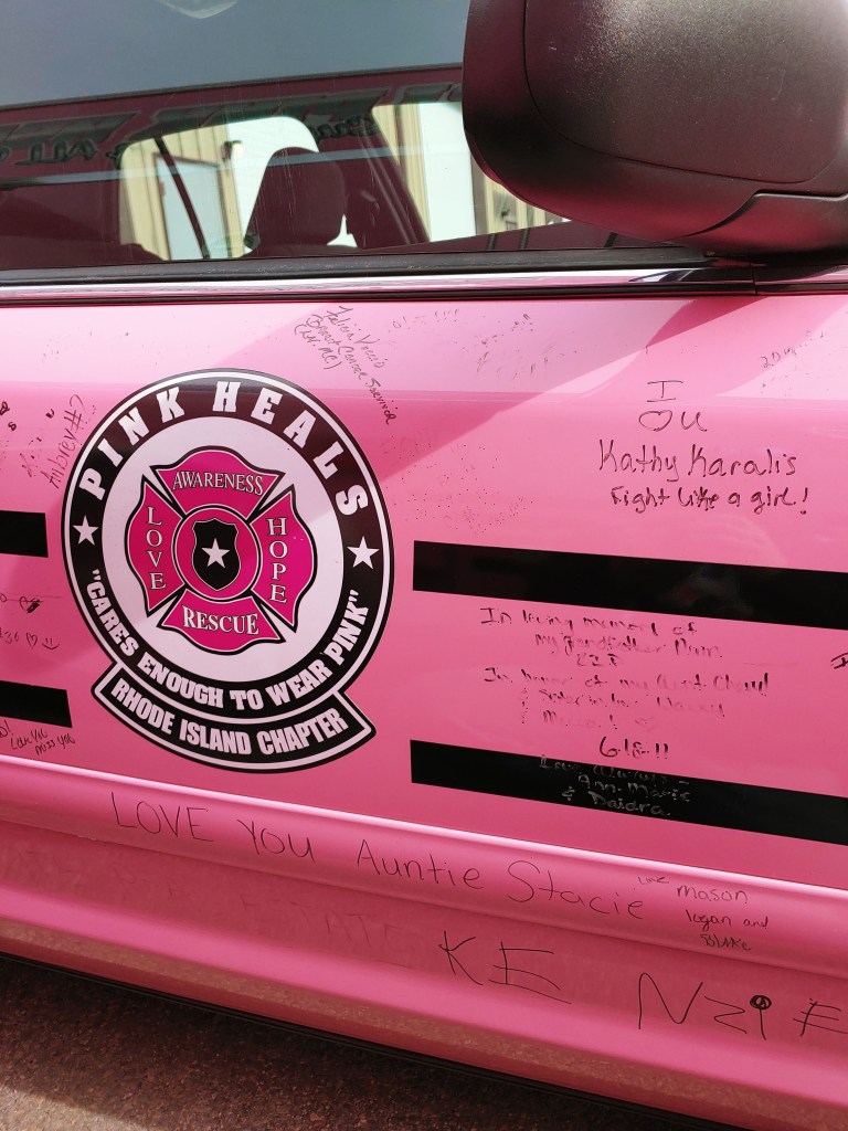 According to their website (www.ripinktrucks.com), “Rhode Island Pink Heals are a 501(c)3 non-profit that raises money to assist men, women, and children battling ALL cancers. All the money we raise is given back to the community. We are firefighters, police officers, EMS workers, nurses, school teachers, SURVIVORS, and more that want to help the people in our own community.” The Pink Heals spread love and joy to families that are suffering from the pain of a loved one fighting cancer or who has recently lost a family member to cancer. Their flower deliveries are, according to Matt Medeiros, “a celebration of life.” Matt mentioned that his organization is so proud that the RI Chapter utilizes 100% of their donations for Rhode Island families.