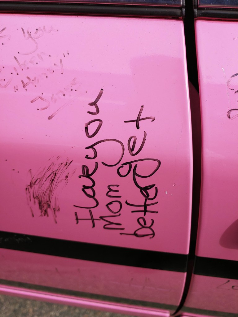 And what about the pink vehicles? Matt and I met Saturday morning and he pulled out a few of the pink vehicles for me to check out. “Each vehicle is named for a very special person,” added Matt. “Susanne was donated by the Warwick Police Department. It is dedicated to a woman who worked in the Town Hall in Warwick, which sits across from the Warwick Police Station.”