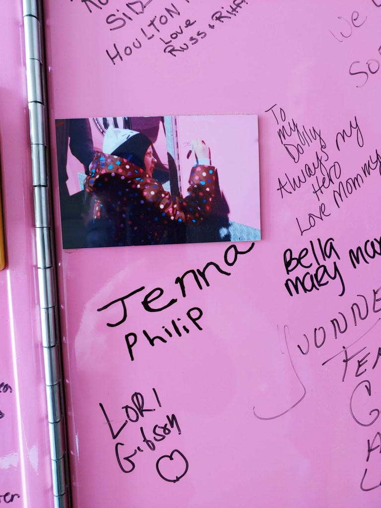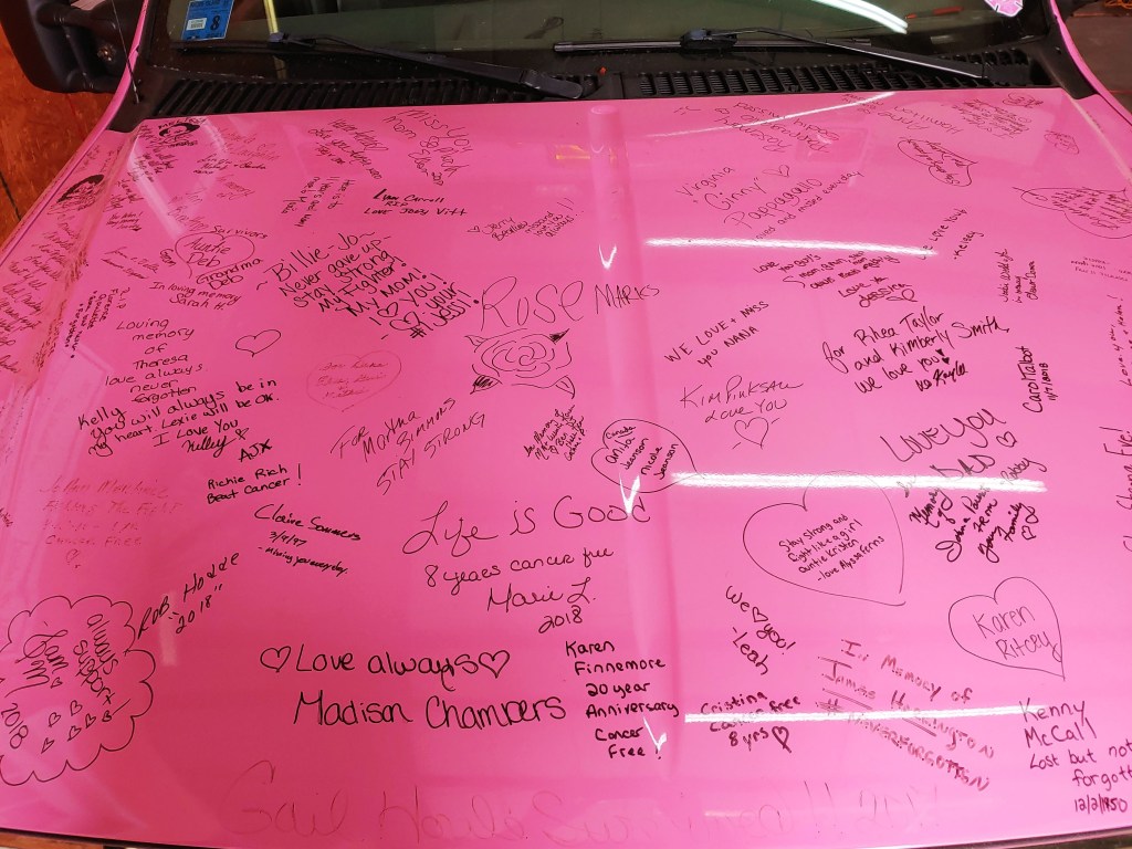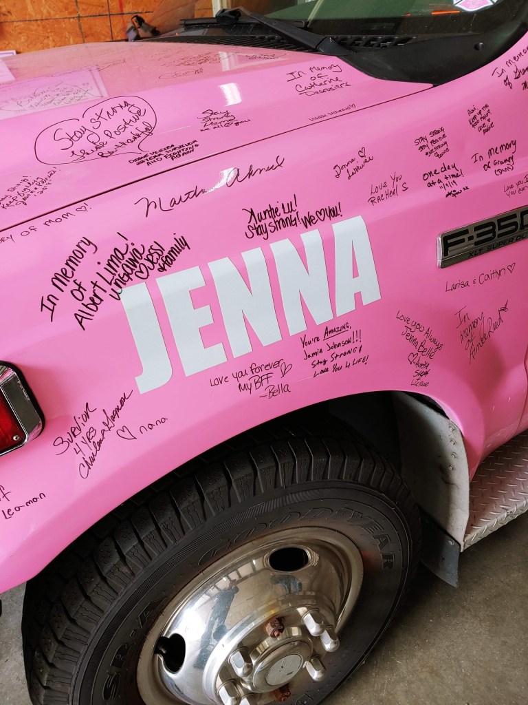 “The truck dedication ceremony features the person signing the truck whom the truck is dedicated to,” shared Matt. “Sadly, if the vehicle ceremony involves a cancer patient who passed away, we include the family in the process of signing the first signature on the vehicle.” This was the case with “Jenna” who tragically lost her battle with brain cancer. Matt brought me into his storage garage to share the stories of Jenna with me.