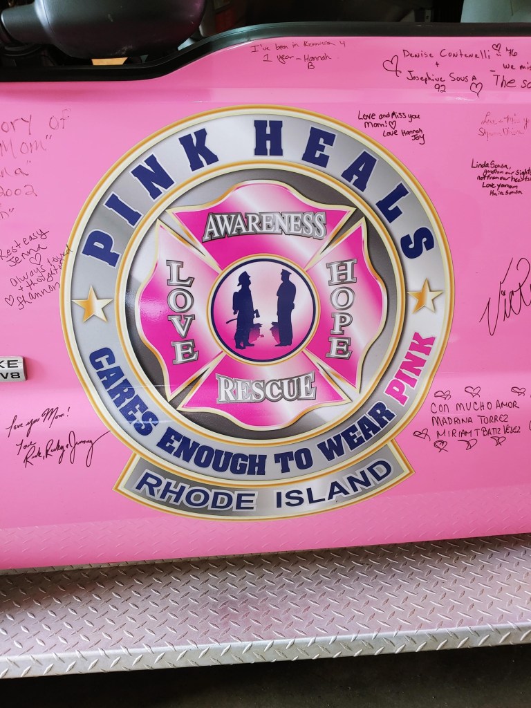 A few years ago, at Comic Con in Providence, I walked by a vendor booth that had a giant pink fire truck. The fire truck had a ton of signatures on it. There were a few men dressed in pink shirts and there was a lot of activity at this particular booth. My son and I grabbed a flyer so I could read up on who this was and what they did. The booth, the fire truck, the firefighters dressed in pink, the signatures, the cause all centered around a very special Rhode Island charity organization – The Rhode Island Chapter of Pink Heals.