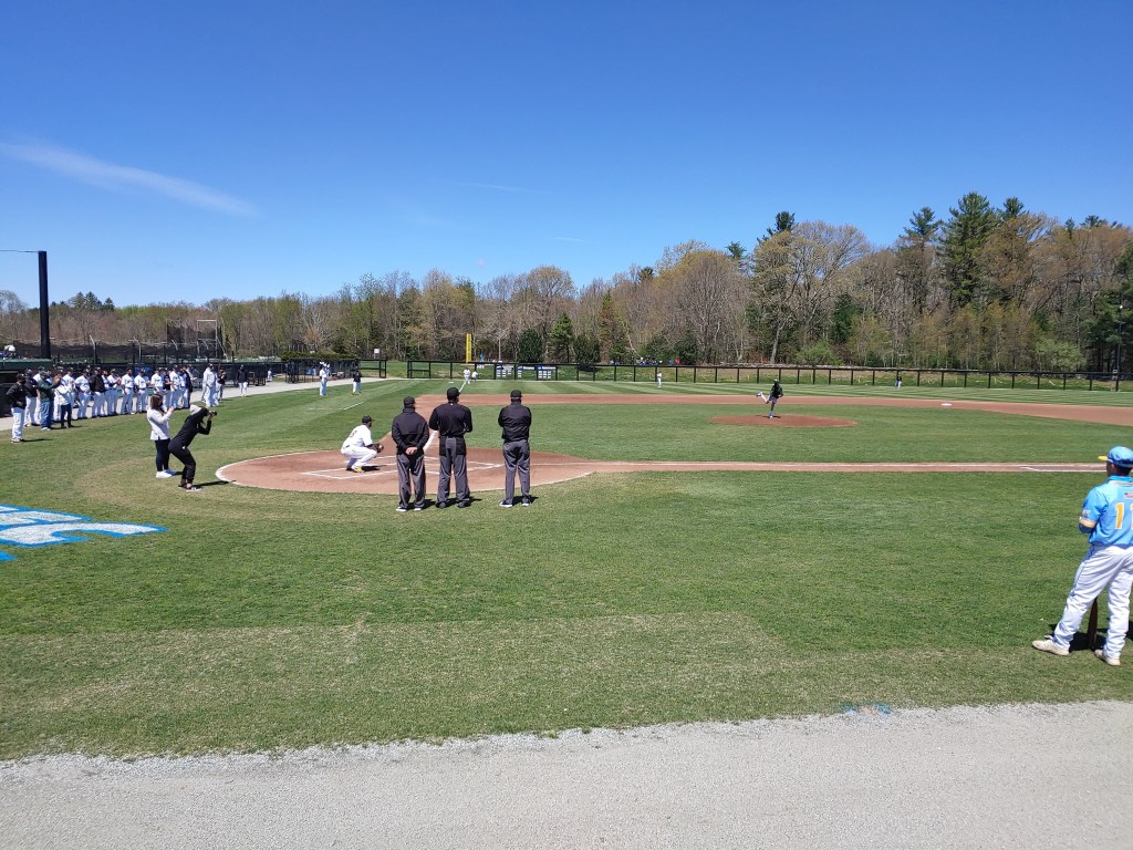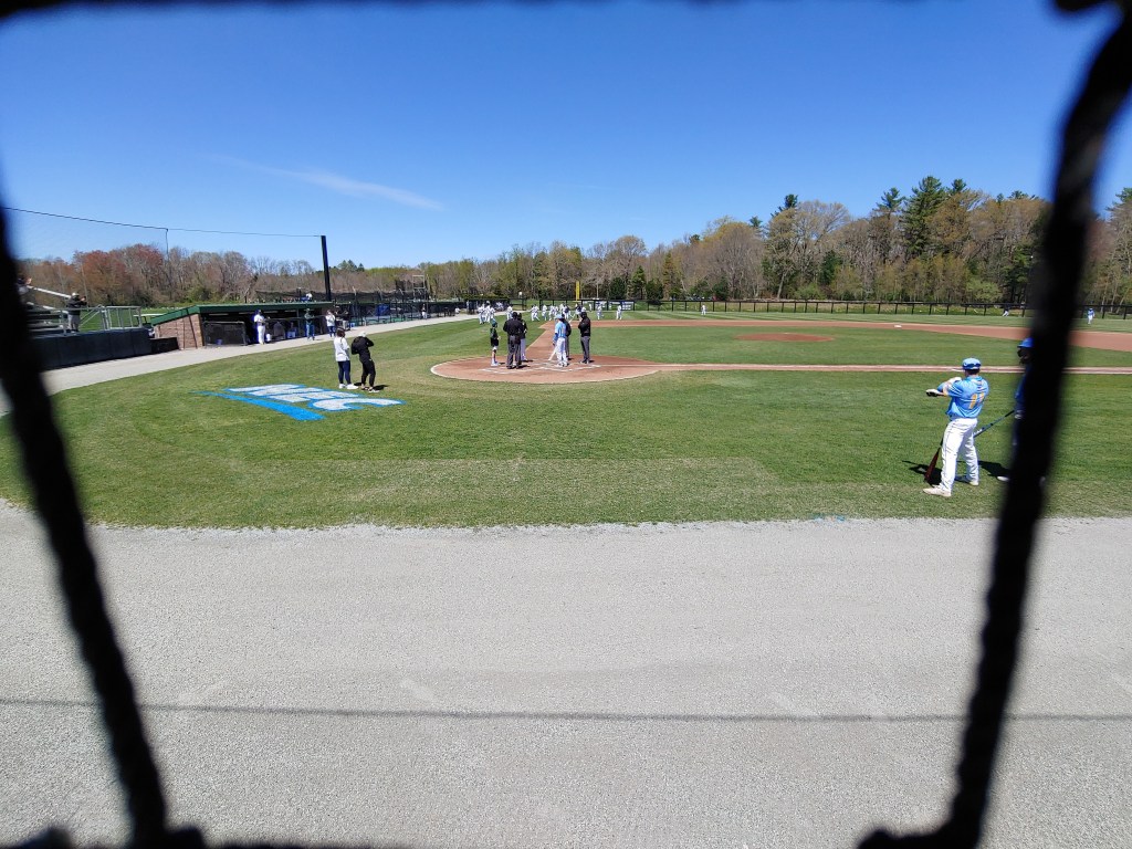 Late Friday night, I got the text from Eric. “You’re all set to come tomorrow.” Eric sent me a health screening portal from Bryant University, which I had to pass in order to receive a large green check mark. I was to show this check mark to the attendant in the guard shack upon entering the campus of Bryant University. Masking and social distancing as well as other spectator policies could be found on Bryant University Athletics’ home page. On the morning of Saturday, May 1st, I logged onto the portal, entered my name, email address, phone number, and answered the health questions, then hit “submit”. A large green check mark appeared and I was cleared to attend the 2021 Coaches vs Cancer game, 1pm featuring Bryant University Baseball vs Long Island University at Conaty Park.