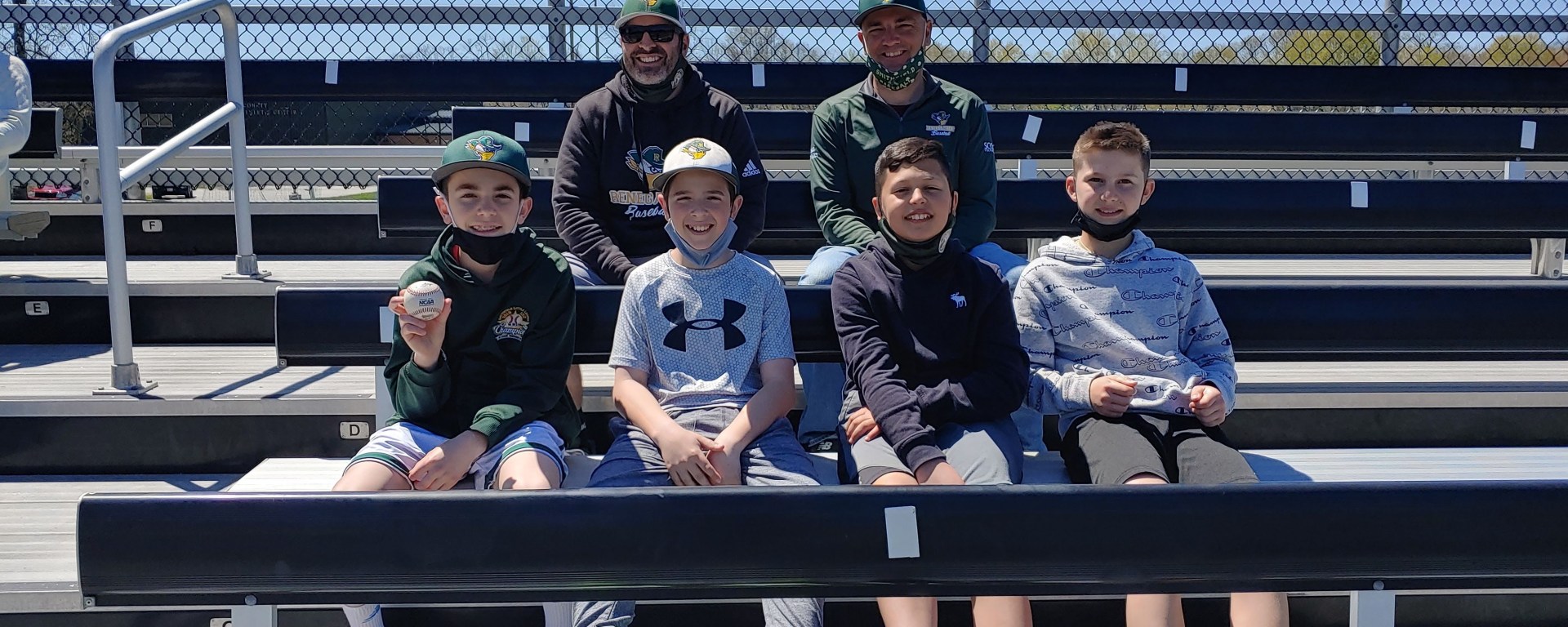 As the game progressed and the in-between inning music began to play, I spotted Noah and his teammates and the man with the green sweatshirt from pre-game sitting on the opposite side of the bleachers from where I was. I packed up my stuff and walked over to introduce myself to who I thought was Dave Antunes, Noah’s Dad. It was easy to find him, he had “Antunes, Manager” on his sleeve. Great guy, proud parent, awesome baseball coach – he turned to his son, Noah, and Noah’s friends to introduce me. The boys, Smithfield Little League 12U and RI Renegades teammates, had come to support their teammate as he threw out the first pitch. Dave and I chatted about the game in front of us along with a host of baseball topics. Dave’s older son, Matt, plays for Smithfield High School and was playing LaSalle Academy in a scrimmage game on Saturday. We chatted about baseball fields, sportsmanship, the 12U scene for Rhode Island baseball in 2021, and why hitting the cutoff is so important! Dave has a great baseball intellect and it was awesome trying to keep up with him. I grabbed a photo of the group, including Noah’s first pitch baseball. Sincerely, it was great to meet Noah, Dave, and his supportive teammates! Continued success, and most importantly, good health!!!