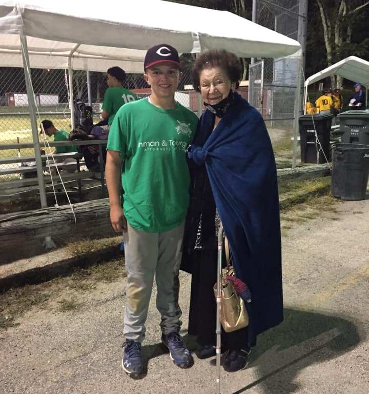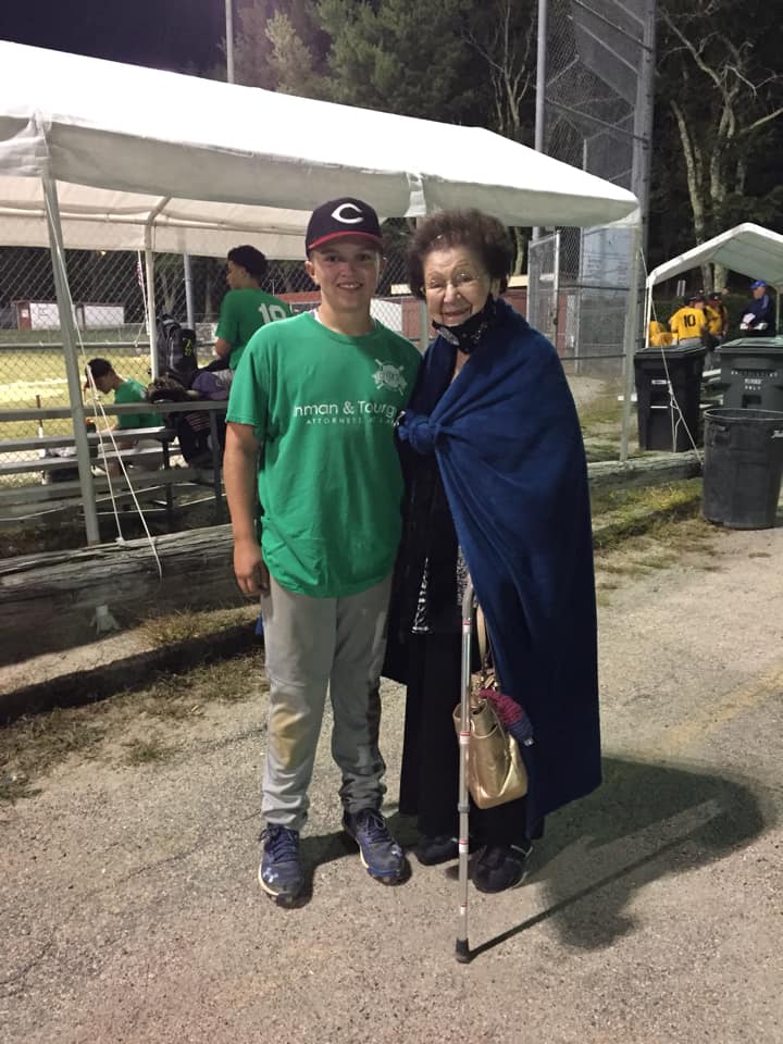 In our home, baseball all started with my Memere (Anthony’s Great Grandma). Teaching Anthony at a young age the game, showing him how to slide into home plate across my kitchen floor, how to swing a bat in her living room, and how to field a ball starting with a glove he got in his Easter basket. At 90, she even surprised us and showed up at the 2018 Little League World Series in Williamsport to see her guy play and cheer on the Coventry Little League team!!! At most games, you will see her sitting behind home plate watching Anthony catch, pitch, play infield, and hit while having her radio on listening to the Boston Red Sox game. She always has a smile on her face at a ball field and most know her…always greeting her!!! Thanks Mem for being such an inspiration to Anthony…to work hard and play great ball!!!! She is determined to live to see him play high school ball then college ball!!!! For me, she has taught me to just love the game… To sit back and enjoy watching my son play ball!!! Mem…You are truly amazing!!!”