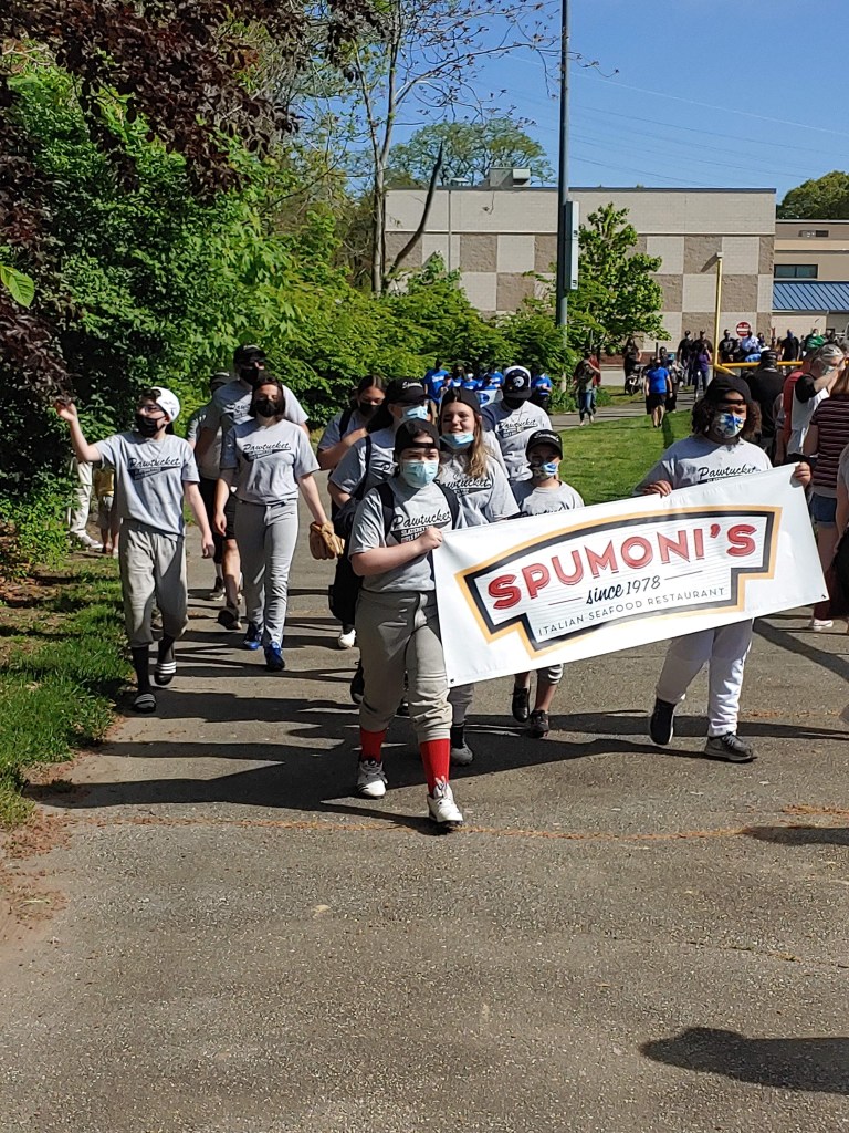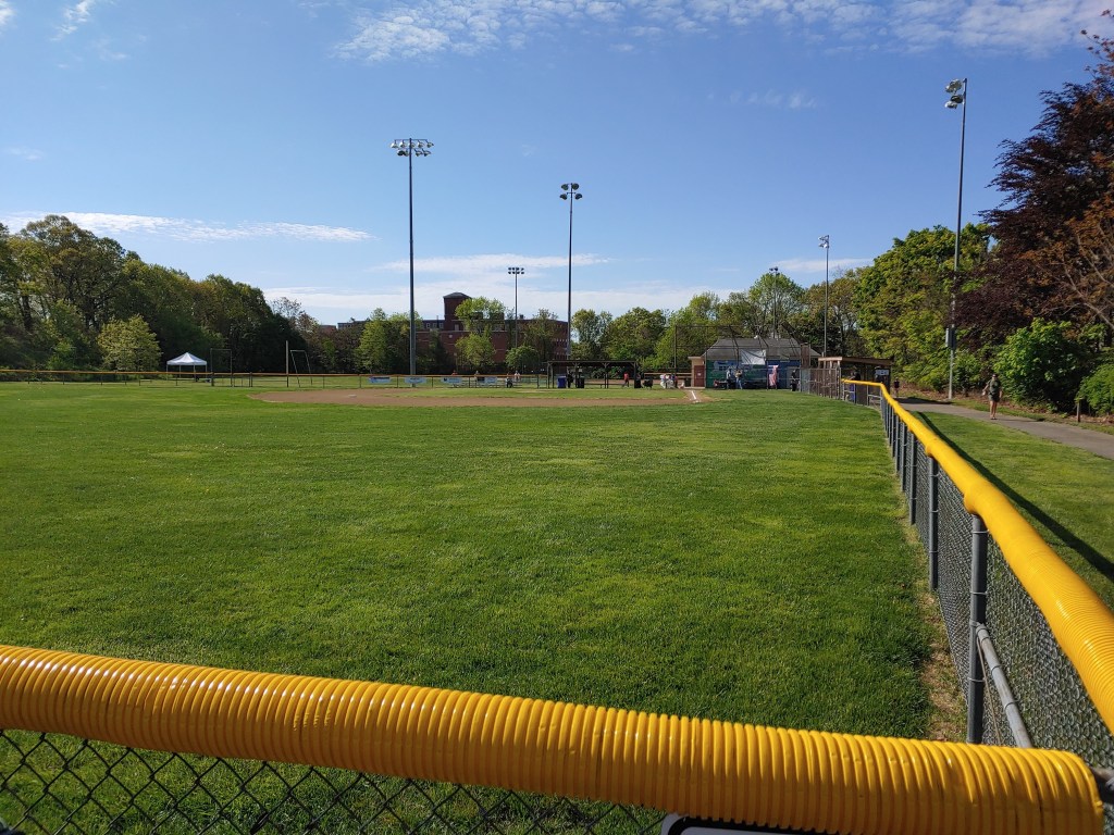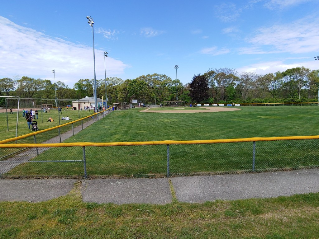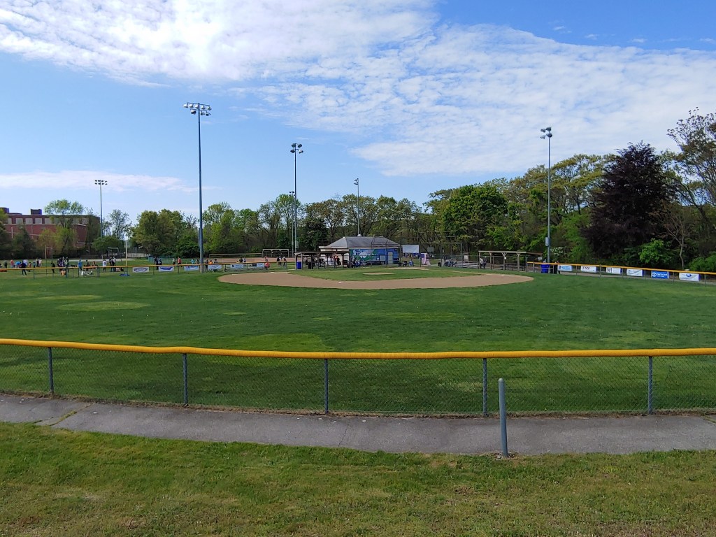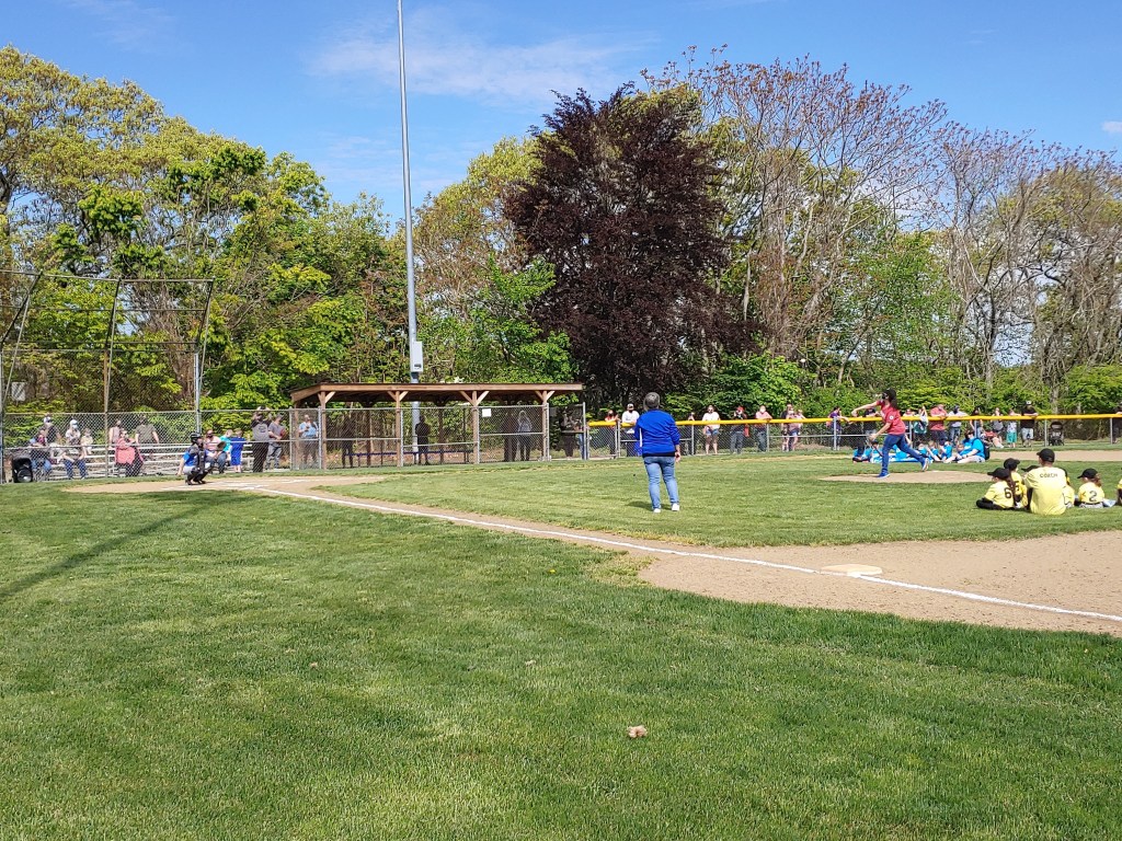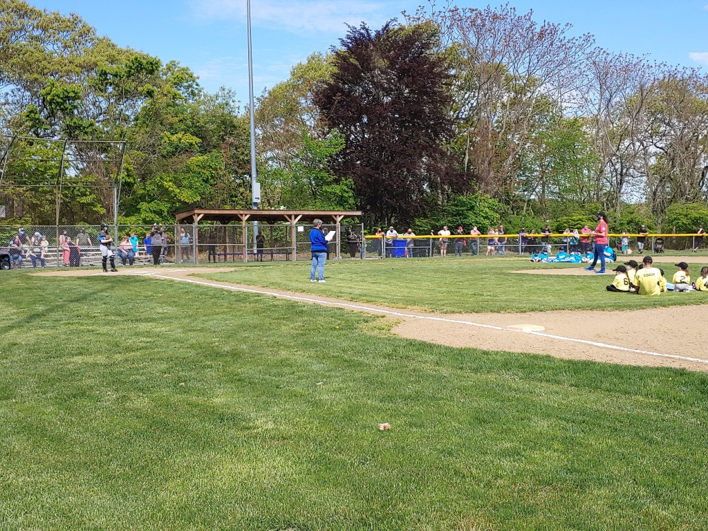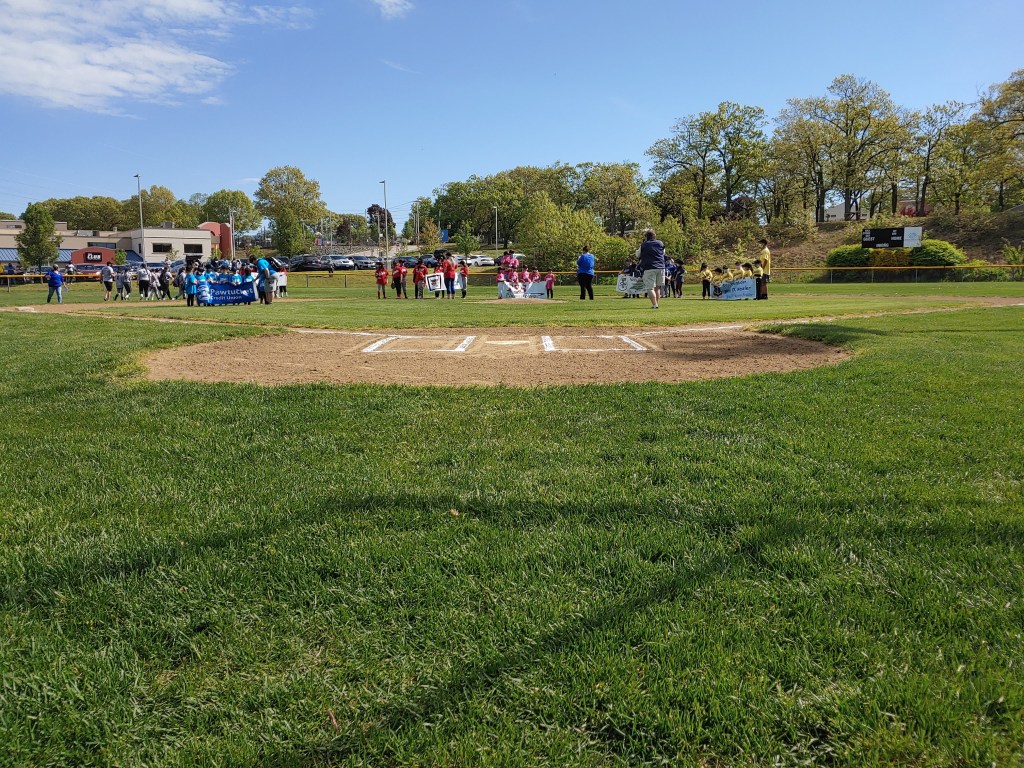 As the parade and its marchers were still being assembled, I took the opportunity to walk around the fields. The City of Pawtucket Parks and Recreation did a fantastic job grooming the fields, lining the bases, and preparing the fields with appropriate safety signage. All three fields at the Boys and Girls Club are in use for the Slaterettes. The main field, where the ceremony was held, is the Juniors Division field. The field to the right as you are walking down the path is for the Slaterettes’ instructional league. The field all the way to the end of the facility is for the Slaterettes’ Tee Ball Division. Again, fantastic job by the Parks and Recreation Department to make these fields safe and ready for baseball.