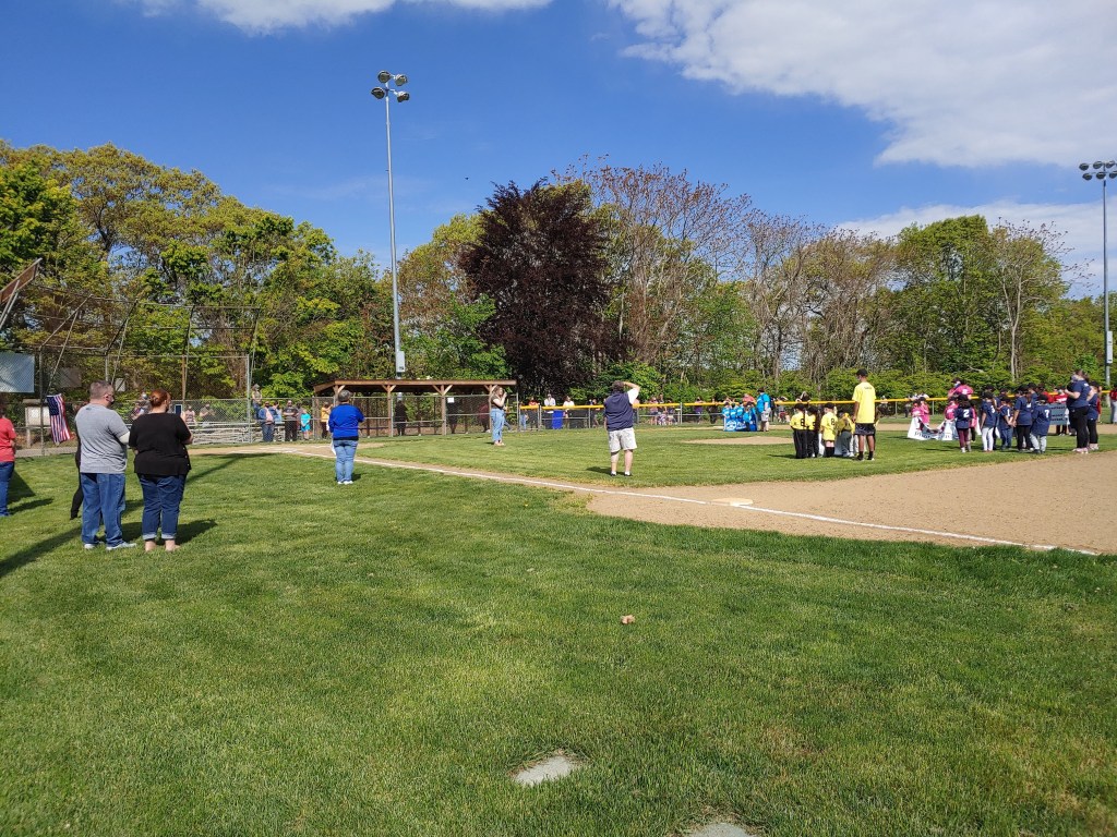 As Marie Twomey had mentioned, Slaterettes alumnus Kyleigh Arenas was asked to sing the National Anthem. She did an amazing job in front a pretty decent crowd of fans, players and coaches, all standing proudly with their baseball caps off. The, Pawtucket Mayor Don Grebien was introduced and spoke to the crowd about the importance of recreational programs such as the Slaterettes baseball program. Bethanie spoke about the incredible support from the City of Pawtucket, including the Mayor’s office and the Parks and Recreation Department. She mentioned the many important sponsors who have supported the Slaterettes not only this season, but in season’s passed. Bethanie then called on each team to stand and be recognized, along with their coach.