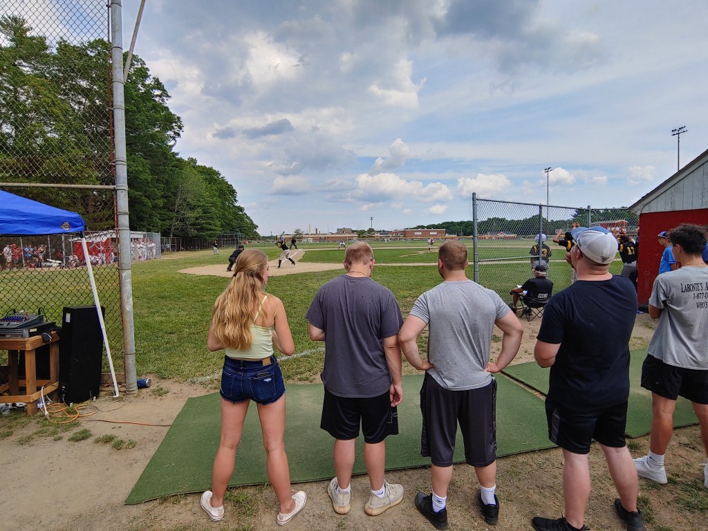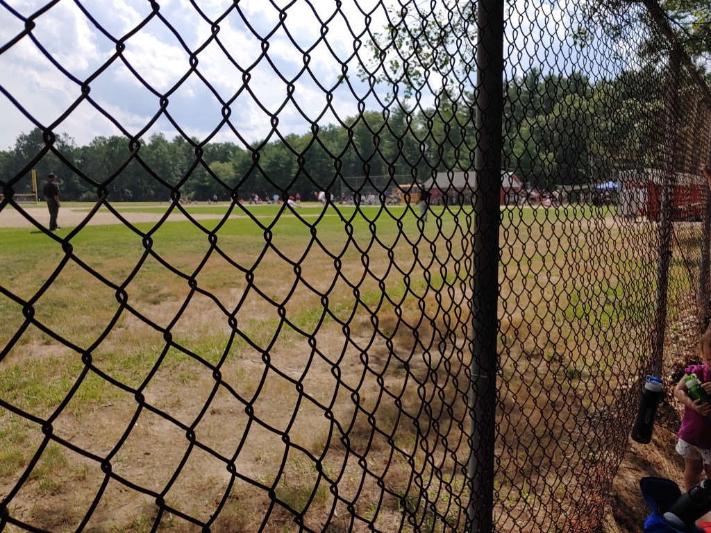 I was eager to see the views from under the huge trees behind the first base dugout, so I made my way passed the fence and into the woods. From there I saw a huge contingent of fans for both Central and Coventry cheering from a completely shaded area. I took a walk passed some youth baseball players, some softball players, parents, fans of all ages down to about mid left field. It was a packed area with fans but I did manage to find a spot to take some photos.