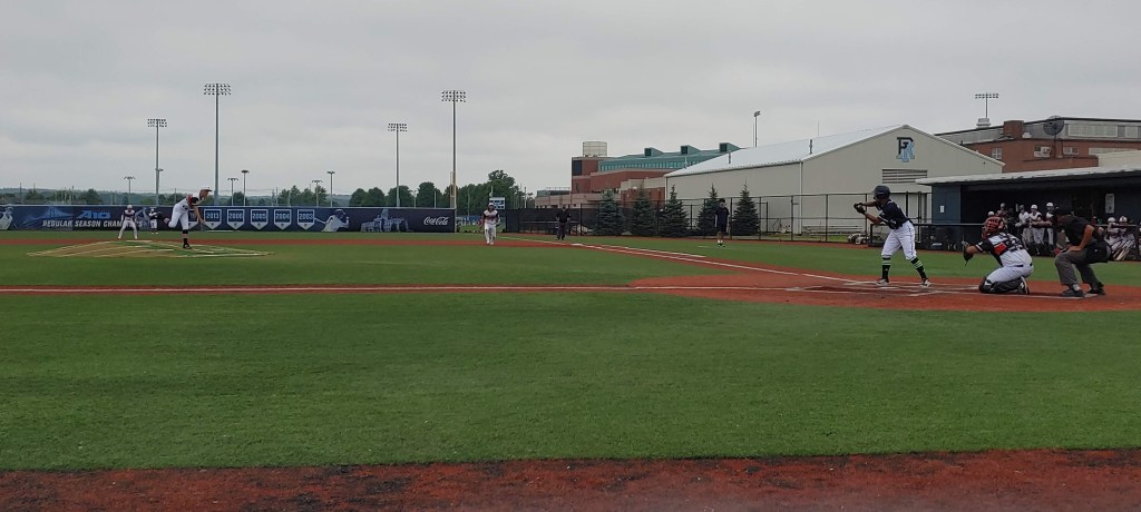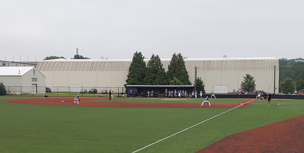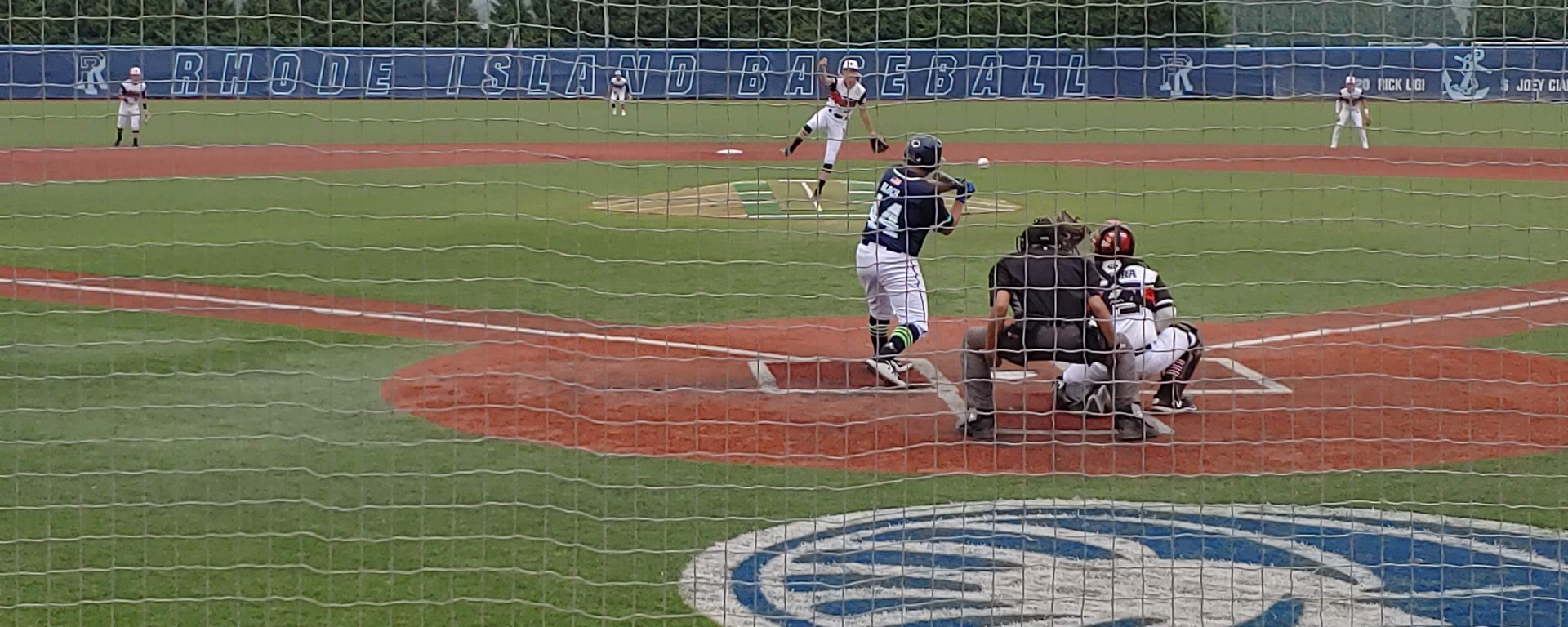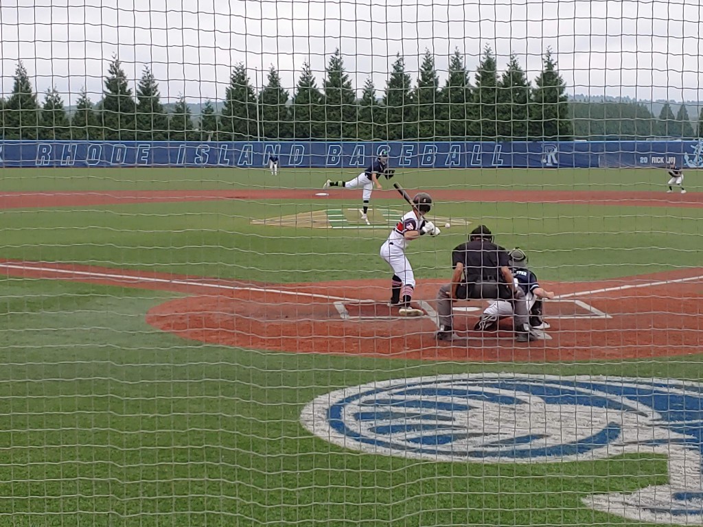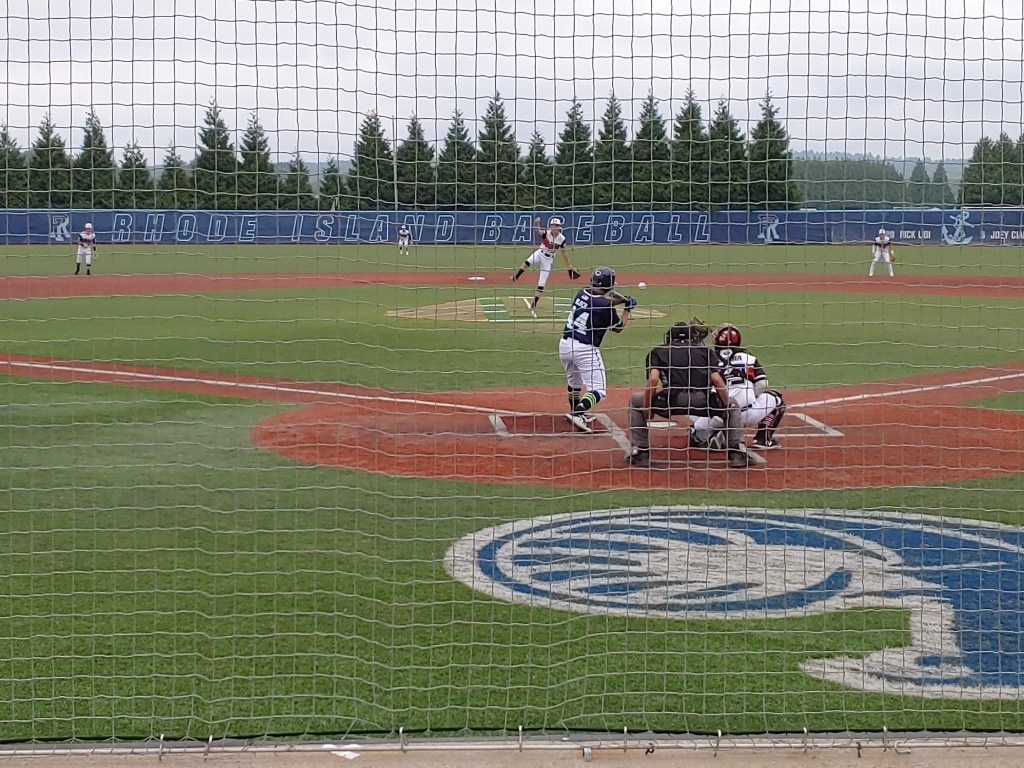 I stayed for a few innings Thursday morning and then caught the rest of the game via the Tourney Machine app on my phone. With the weather not looking promising for Friday’s games, I was happy to get out to URI to watch some baseball. And I was especially thrilled to watch two Rhode Island baseball clubs squaring off against each other. Some of these baseball players who were just high school classmates and teammates a few weeks ago were now in opposite dugouts on Thursday morning. That’s part of what makes travel and showcase teams so interesting to write about – you play for your local high school team all spring, then potentially against your high school teammates in the summer.