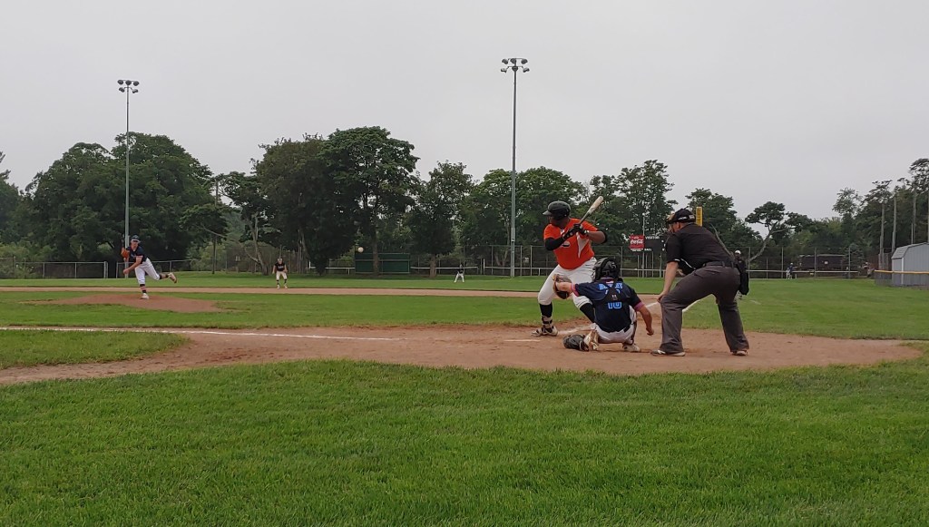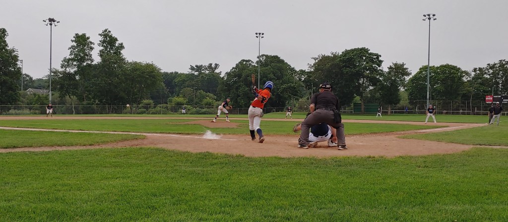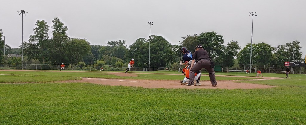 The phrase “timing is everything” can be used for life, relationships, and of course, baseball. In my case, my timing was just right for Wednesday’s game. As I walked up to the field and sat in the bleachers behind the backstop and said hello to a few fans, The Ocean State Makos Cameron Harthan slammed a pitch over the right field scoreboard, into the tennis courts, for a solo home run. I didn’t get the photo or video of his hit but was able to watch it fly high and out of Sprague Park. ‘Wow, perfect timing’ I muttered to myself and then sat down to watch a few innings of the game. Here are the lineups for both teams, which I was able to grab post game from each team’s GameChanger page:
