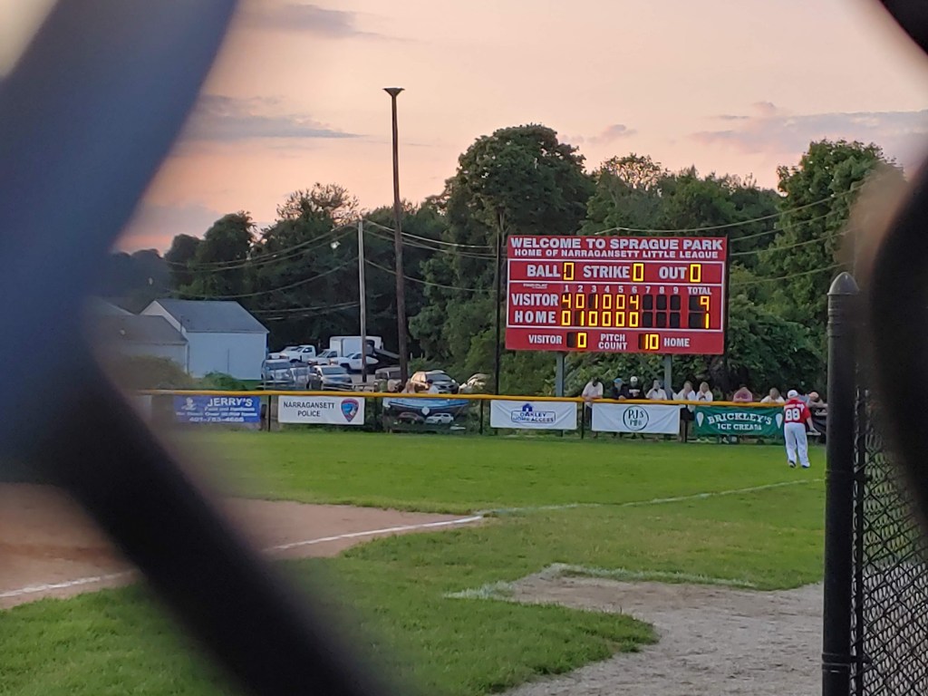 Sprague Park in Narragansett holds a special place in my baseball life. I played both JV and Varsity baseball games for North Kingstown High School versus Narragansett High School teams at Sprague Park for 4 years in the late 1980s. Then, played my summer baseball home games with American Legion Post 39 at Sprague Park. Now, I cheer on my slugging nephews (Jackson, Finley, Harvey) on the Narragansett Little League field, which is just a Finley Hohl home run away from the big field. In fact, I was in the stands for the Saturday game featuring the 12U District All Stars from Narragansett and Westerly National.