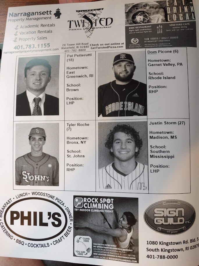 When I go to a baseball game, whether it is a professional game or high school game or District All Star game, I like to get a gameday program (if one is available.) As a fan, I am a stat guy and want to learn as much as I can about the players on the field. Every summer, when I go to see the Newport Gulls or the Ocean State Waves, I always get a game day program to read up on who is playing for the team, see where they are from, where they play their college ball, and check out all the local sponsors who support the team. Recently, I picked up an Ocean State Waves Gameday Program and saw the names of several Rhode Island natives – Daniel Baruch, Alex Ramirez, Shaun Gamelin, and Pat Petteruti. Listed next to their names are their Class in College, height, weight, position on the field, whether they throw left or bat right, their hometown and the college/university they attend. One particular player caught my eye and I wanted to find out more about him – Pat Petteruti.