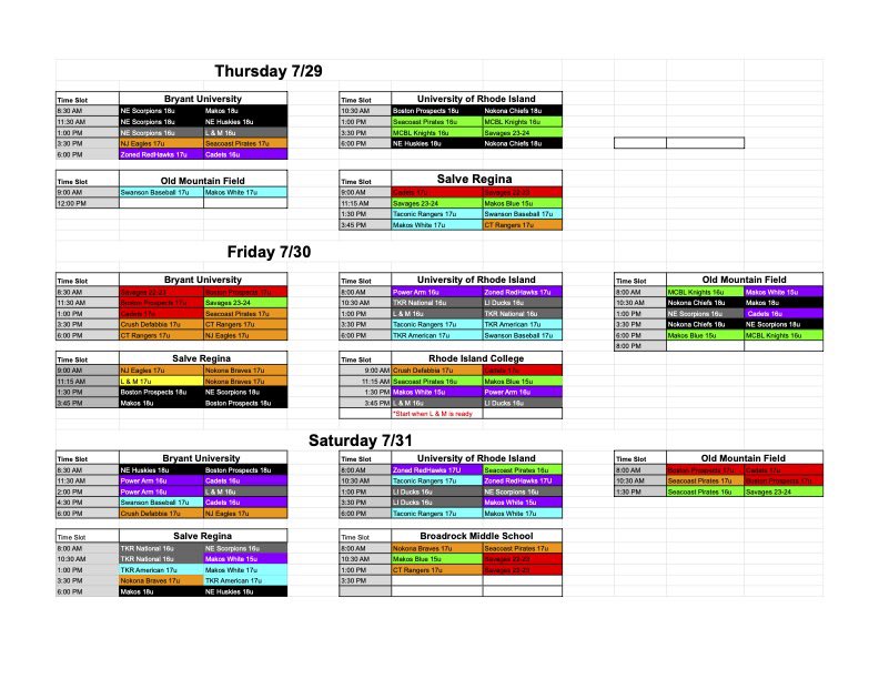 The Ocean State Waves of the New England Collegiate Baseball League have finalized their schedule for the 2021 Ocean State Waves Summer Games. This tournament will be played over the next 3 days (weather permitting) on some of the top collegiate and amateur baseball fields in Rhode Island. Bryant University, Salve Regina, URI, Old Mountain Field, Rhode Island College, and Broad Rock Middle School will be the host fields for some of the top baseball underclassmen not only from Rhode Island but surrounding areas as well. Here is the schedule of games, courtesy of the Ocean State Waves Twitter account (@oceanstatewaves):
