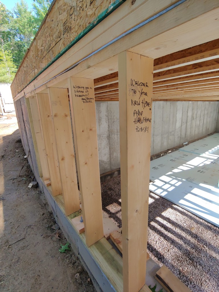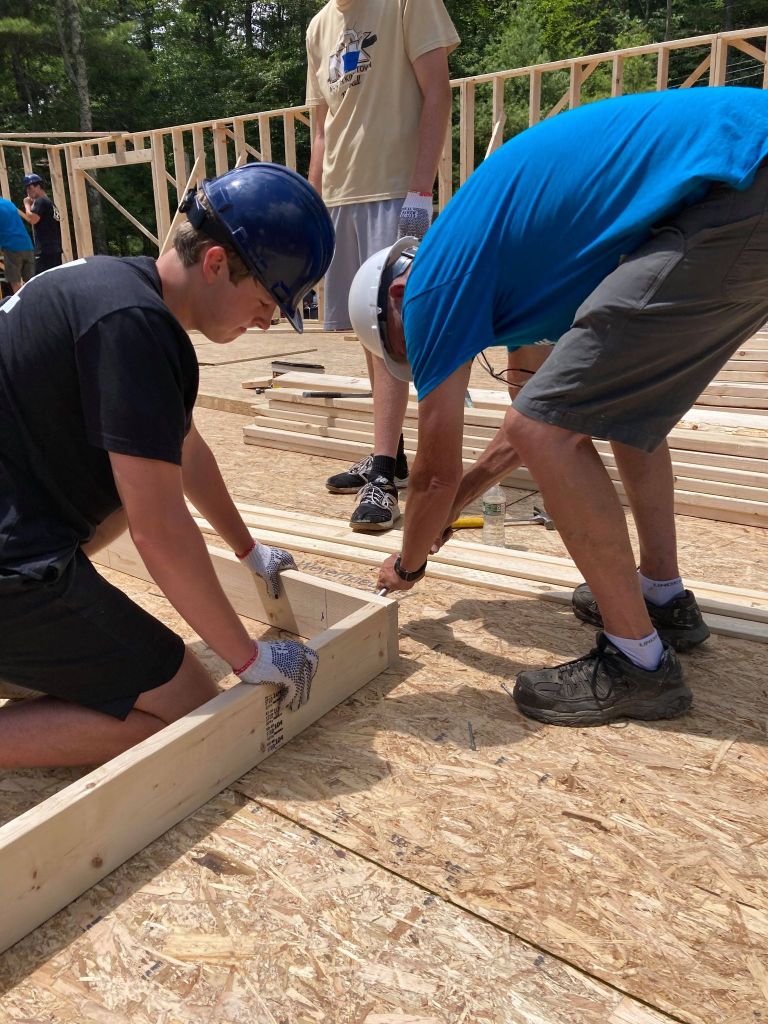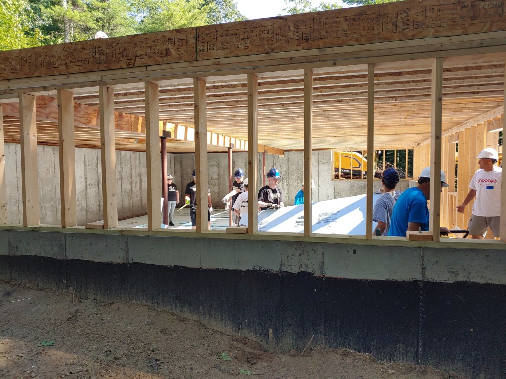 I took a walk around the construction site and observed the team of builders working on the basement. The volunteers were laying down insulation, cutting sheets, and placing them in an interlocking pattern on the floor. As they did so expertly on the baseball fields of Rhode Island this Spring, the North Kingstown High School baseball team worked together to get the job done, one task at a time, one board at a time, one section at a time. Each one of the the players giving up their Friday morning, where they could have been hitting baseballs in the cage or taking grounders at second or throwing a bullpen session or simply just being a teenager. Nope, they were volunteering their time so a local family could realize the dream of all dreams – to move into a home to better their family and their lives for years to come. Pretty awesome to be a part of that experience and I have to say I have a lot of respect for the players and their families for volunteering their time and being a part of this build.