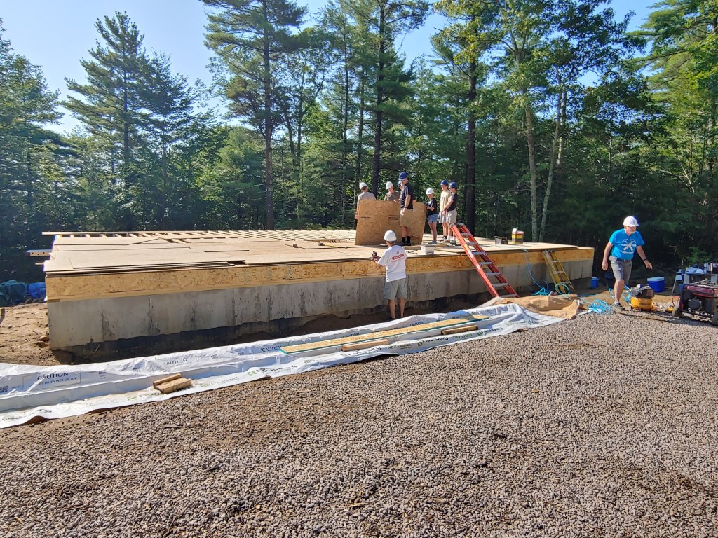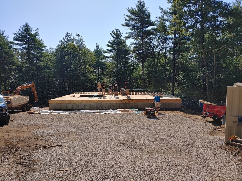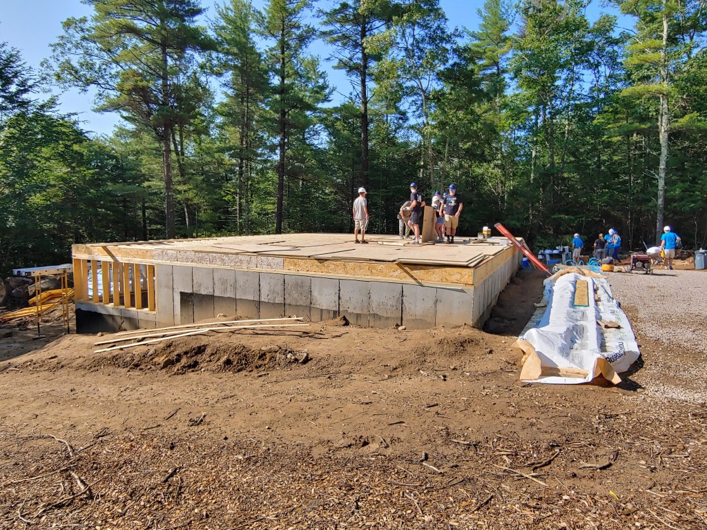 Friday morning I took the drive out to Exeter to get a first hand look at the Habitat for Humanity experience. As I pulled up Ten Rod Road, then to Gardiner Rd, there were a line of cars parked near the construction site and a trailer with pre-built sections of the house in the road. The North Kingstown High School baseball team and some parent volunteers were already working on the main subfloor as I walked down the gravel driveway to meet Caroline. Caroline is a great representative of South County Habitat for Humanity and I encourage you to reach out to her for any questions. She is a fountain of information about the program, how families qualify for the program, the necessary classes and requirements of the potential homeowner, and so much more. One of the requirements of the Habitat for Humanity program is you, the potential homeowner, actually help build your own home, volunteering hours hammering nails, laying down insulation, and so on. And just as I was speaking to Caroline on site, the new homeowner arrived and greeted the staff and NKHS volunteers.