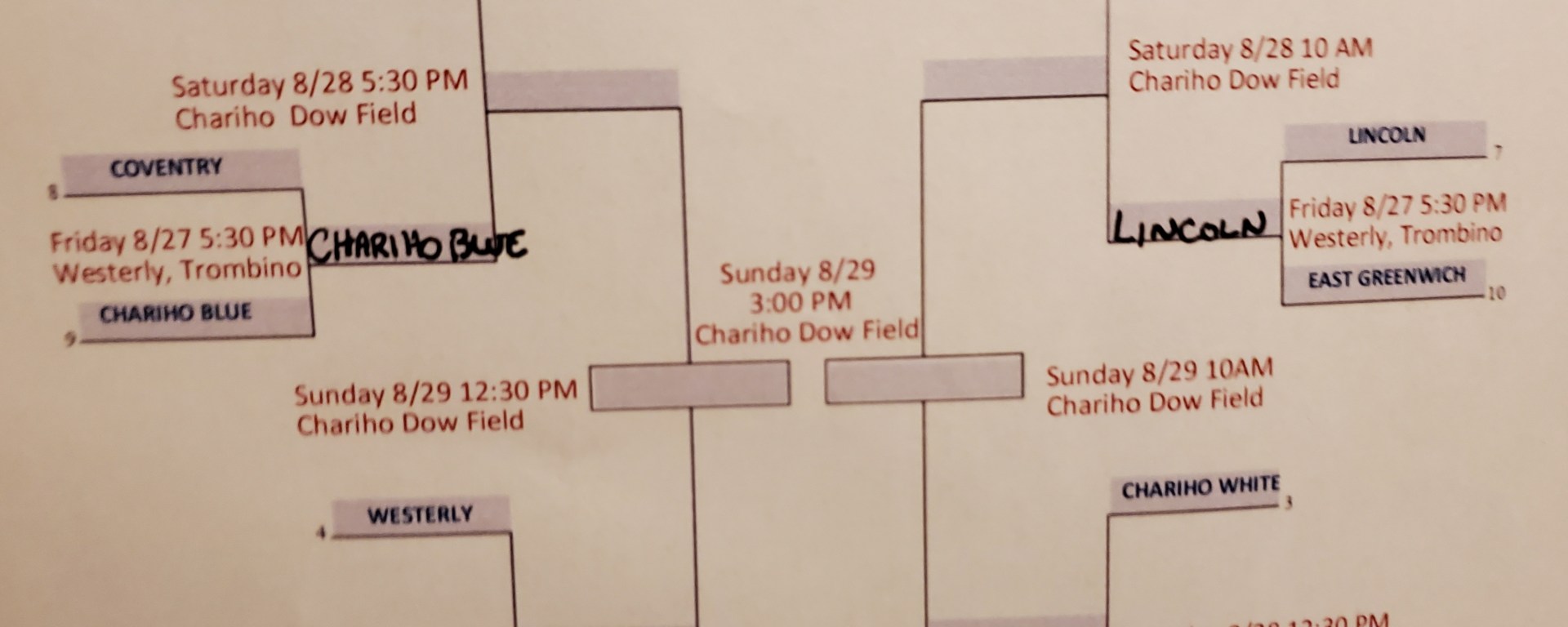 Game 1 takes place this morning, Saturday August 28th, at 10am. In total, 4 games are scheduled for today (Saturday), with semifinals and finals scheduled for tomorrow (Sunday). Dow Field is located at 1118 Main Street, Hopkinton. Click on the photo below to be redirected to Google Maps: