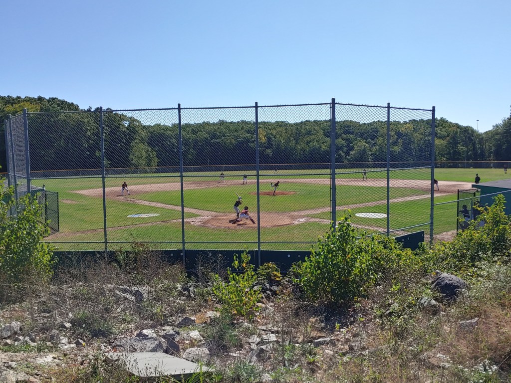 Fell Baseball Field is located on the Warwick campus of the Community College of Rhode Island, or CCRI. The field is located at the far end of the large parking lot, which is to the left of the main buildings and gymnasiums. It is set down the hill, so it is difficult to see once you enter the parking lot. Chris Genao of the Rhode Island Devils Baseball organization emailed me this week that his 18U club would be facing the CCRI Fall Baseball team, so I took the drive to Warwick to check it out.