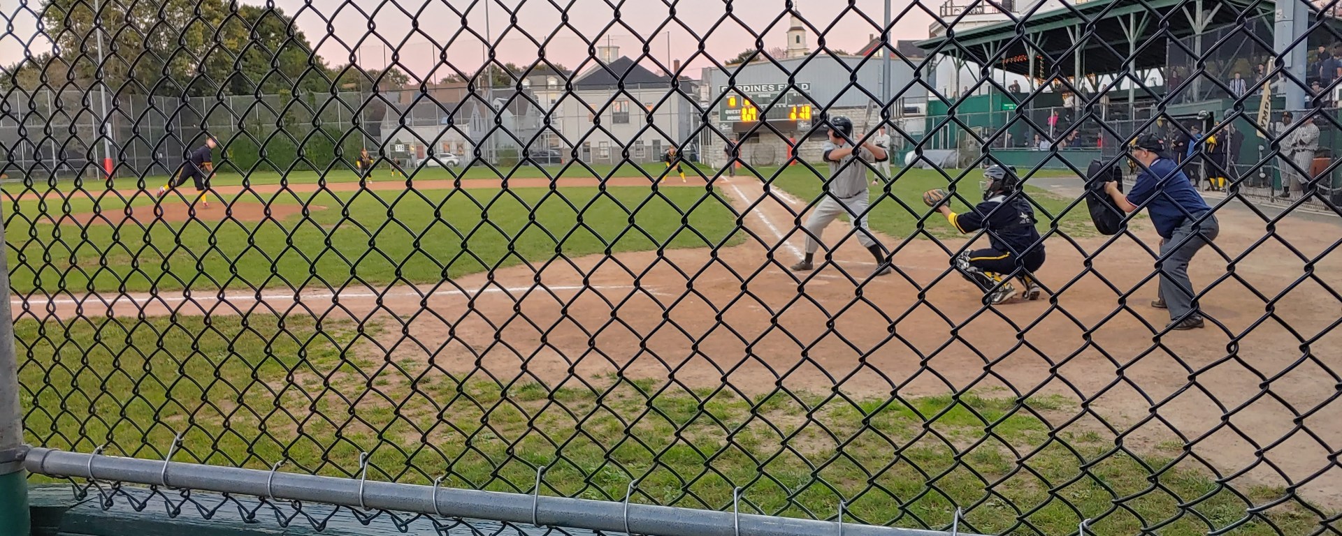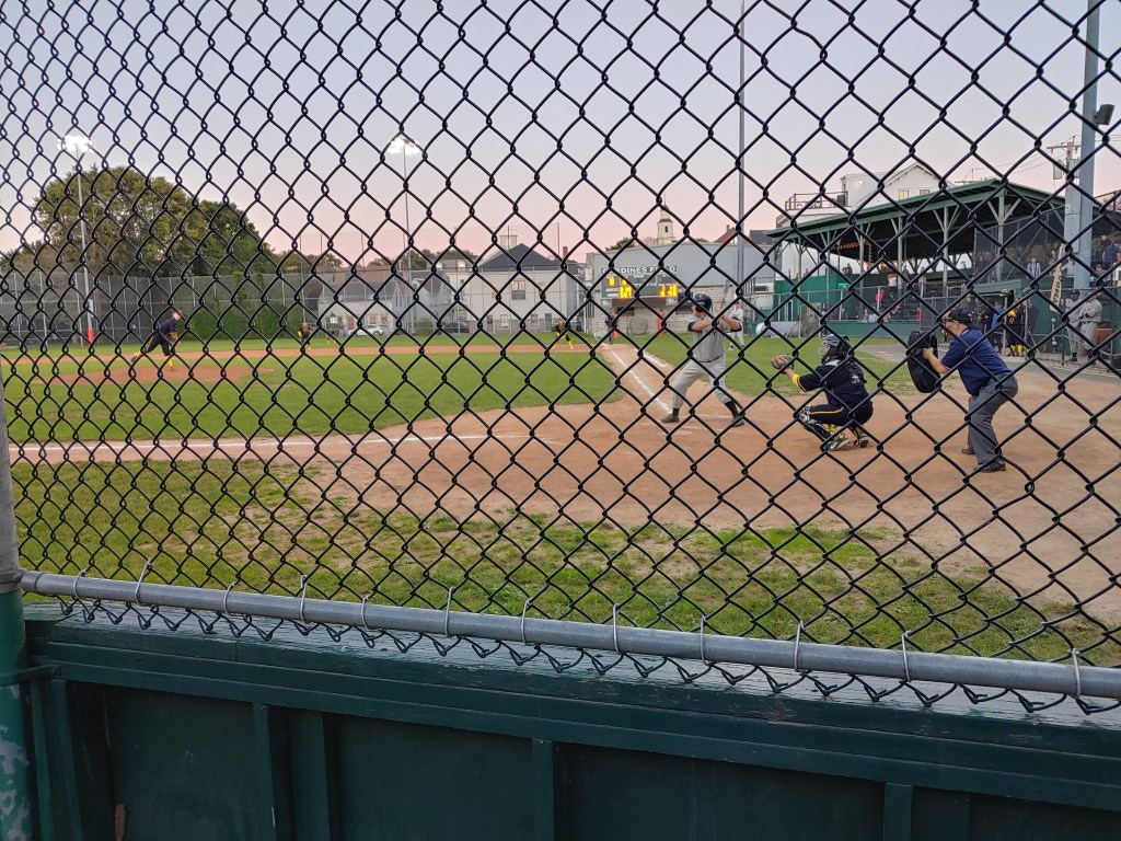 The game time temperature (according to my phone) was 66°. By the top of the 2nd inning, the shadows had made their way past the pitcher’s mound and stretched as far as deep 2nd base. It was a very comfortable night for baseball in October, in Newport.