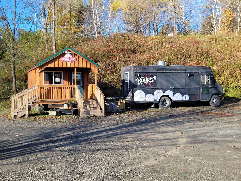 I got the sense that Route 28 was not a common exercise path for the locals. So, I safely double timed it back to the hotel paying close attention to the traffic facing me. Along the way, I saw more and more baseball themed ice cream stands, food trucks, batting cages, and businesses alike with some sort of baseball lingo in the name. Like these two set back off Route 28 (check out the ice cream on the top of the cone shaped like a baseball):