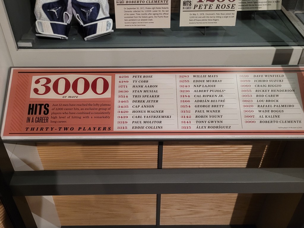 3,243 career hits for Woonsocket’s Nap Lajoie. At the time this list was compiled and exhibited, Lajoie was #14 all time.
