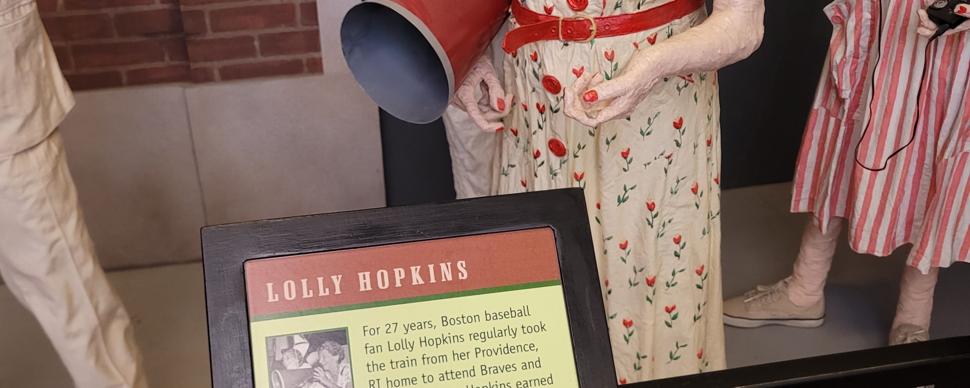 Making my way to the third floor, I stopped to read about Providence’s Lolly Hopkins, aka “Megaphone Lolly.” Lolly was a huge baseball fan who took the train to Boston to watch the Braves (Boston Braves) and Red Sox play. Wow, another Hopkins Baseball connection here in Rhode Island? They are everywhere!!!