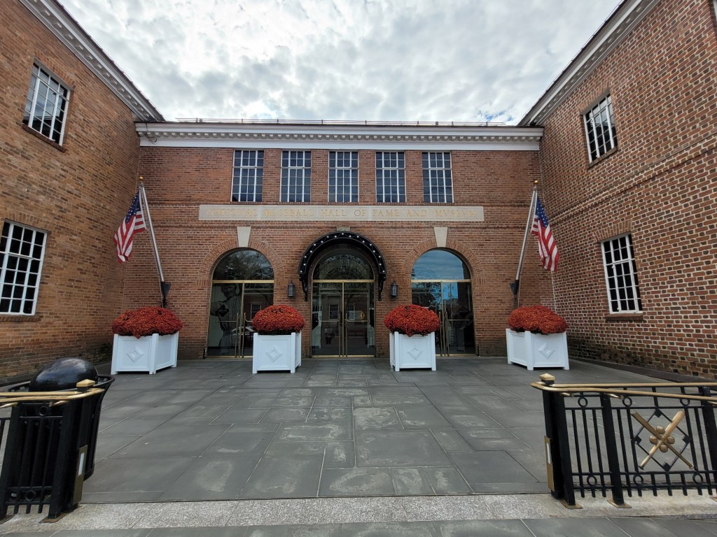 Have you ever stood just outside the main gate of any park, restaurant, graduation ceremony and just knew in your heart that just on the other side of that gate, that door, that entryway – something incredible was about to happen. Or were you someone who pushed through the crowds, flew up doors, and just sprinted in with both feet moving so fast it felt you were flying? Good, this begins to set the emotional stage for me standing in front of the National Baseball Hall of Fame Museum in Cooperstown, NY. Nearing 50, I stood there armed with all of this baseball knowledge of who I was going to see in terms of exhibits, I had Director Scot Mondore’s RI baseball list, what player’s plaques I would locate, the Boston Red Sox stuff I figured would be in the Hall. The anxious and overexcited kid in me (nearing 50, going on 12) wanted to bust down the doors, sprint around the Hall, take a zillion photos, and completely immerse myself in all of the baseball wonder just 10 feet or so away from me. After a deep breath or two, I decided on a fair split of emotions to satisfy the adult and the kid in me.