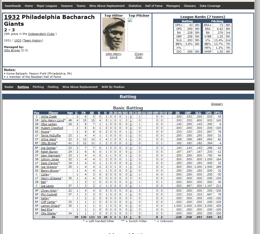 Quick tangent – Seamheads.com is an incredible online baseball resource and quite frankly one of the best baseball websites I have ever visited. They cover baseball history, stats, baseball fields (gone and still standing), have a tremendous reference database for Negro League Baseball, expert reporting, and so much more. I was blown away by the content on Seamheads.com and will definitely use it for reference material going forward. You can read more about Seamheads.com by clicking this link – Seamheads, About Us.