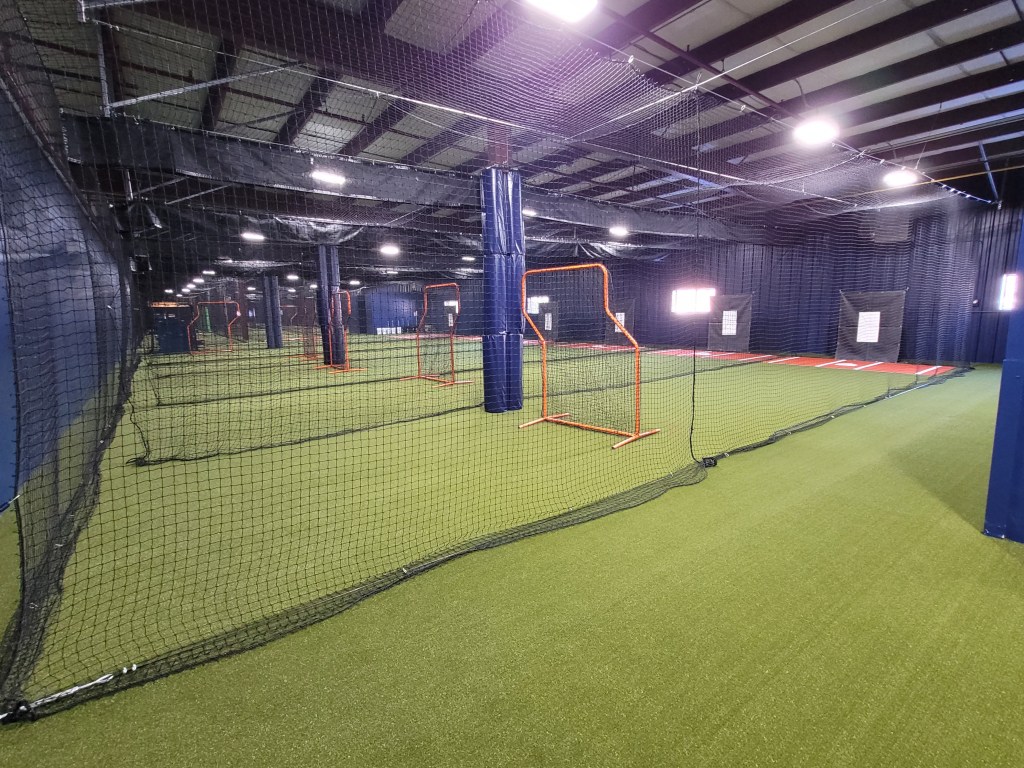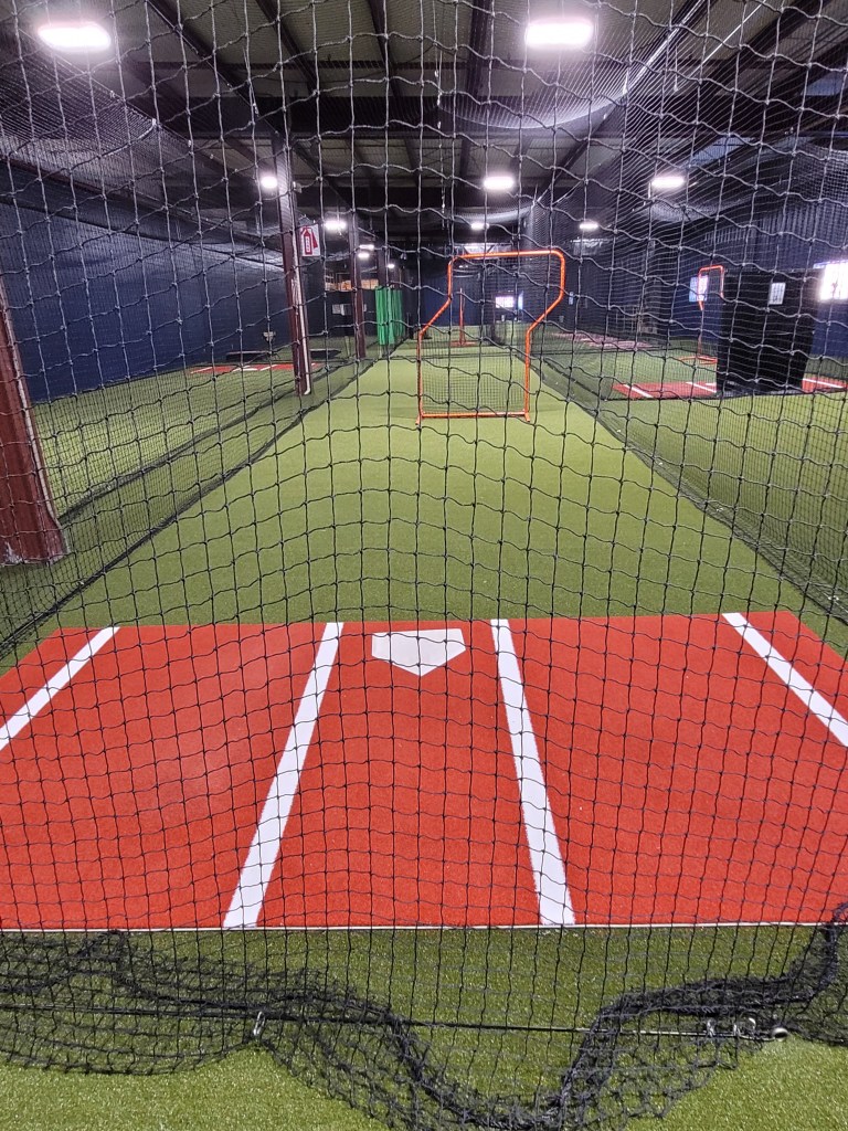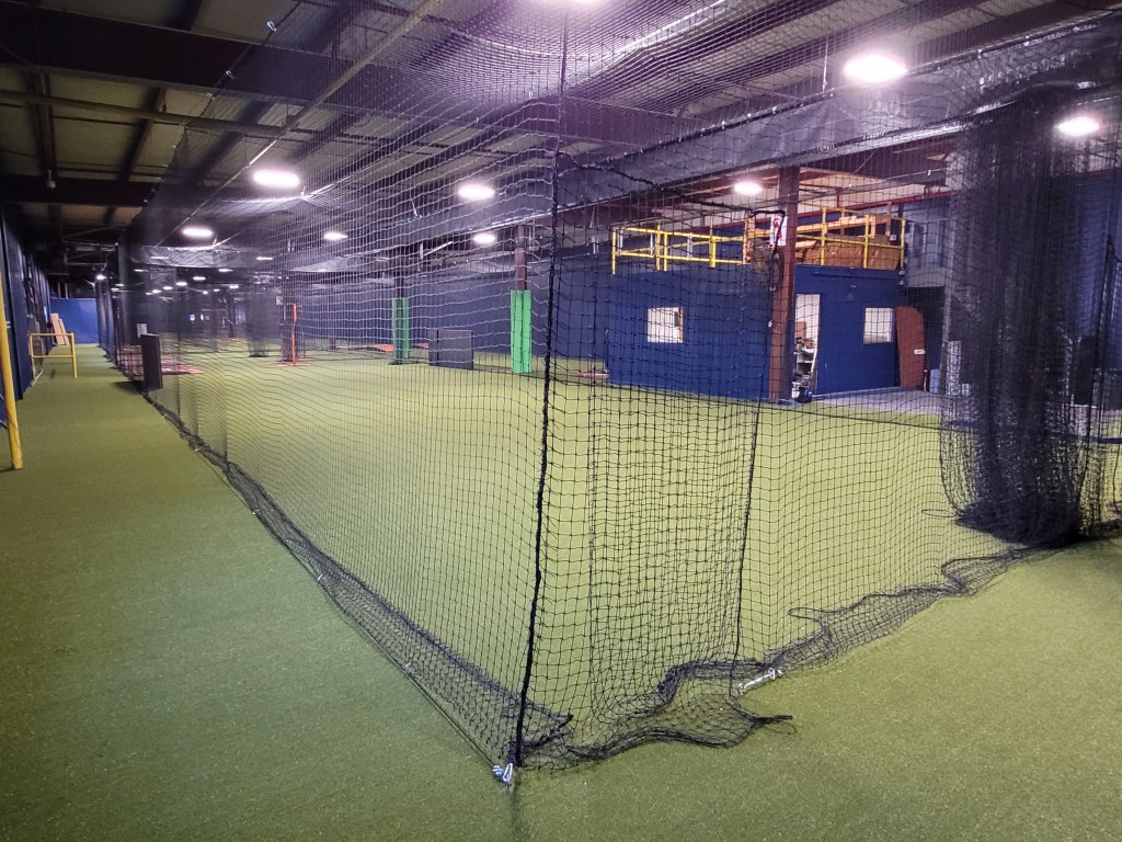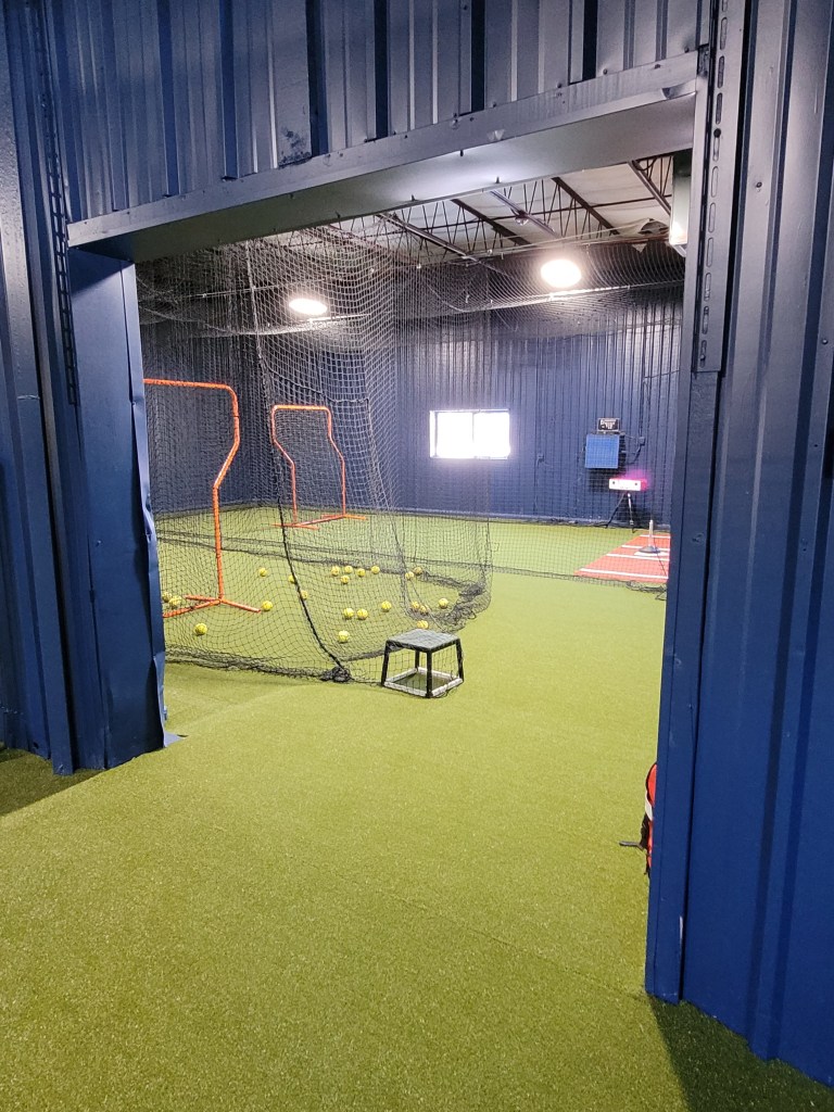 My eyes weren’t being tricked, the facility went on and on. As we walked from the lobby into the training facility, I looked down the building to see an massive layout of sports, baseball, and softball training resources. “We had a soft opening in December,” said Brendan, “some of the Outlaws players came in and used the place and we took in what the potential could be here.” The place screamed “brand new” everything from the turf to the L-screens, the home plates, netting, and other sports equipment. “Firecracker Sports did a phenomenal job equipping the facility,” Phil added pointing to the retractable netting, the turf, and other baseball and softball equipment. I took a moment to take in layout, which Phil and Brendan had personally drawn out and envisioned, and with the expertise of Firecracker Sports, had turned into what I saw I person.