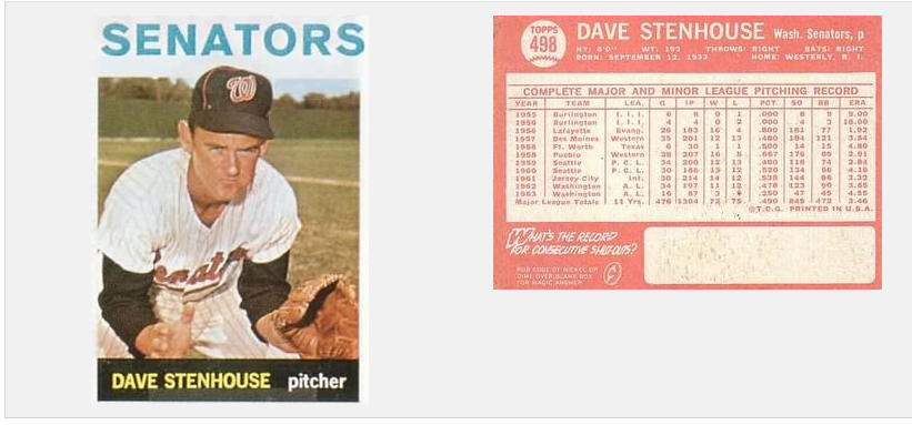 In 1962, as previously mentioned, Rookie Dave Stenhouse pitched in the All Star Game at Chicago’s Wrigley Field, the home field of the club who had signed him some seven years earlier. I wanted to know which ballparks were Dave’s favorites as a Major Leaguer. “My favorite ballpark to pitch in was Yankee Stadium.” Dave noted my answers are my favorite to pitch in and he explained, ” The air moving through that stadium could help a pitcher like me with the stuff I had. Breaking stuff went down, out of the hitting zone. Another great pitcher’s park was Baltimore. Washington was a tough park for my pitching. Air meant a lot in terms of what the ball did. Sinker ball pitchers love ballparks with air movement. Fenway Park was a tough place to pitch because of how the wind carries in the stadium. Amazing ballparks, yet a few select come to mind that helped my breaking ball get outs!”