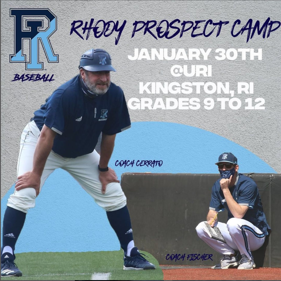 University of Rhode Island Baseball will host a “Rhody Prospect Camp” this upcoming January 30th. It is the first camp of 2022 and will be held indoors (The Hitting Barn) on the campus of URI in Kingston. According to the camp’s registration page, “The Rhody Prospect Camp is specifically geared for high school baseball players who have an interest in playing baseball at the University of Rhode Island. A number of our former and current players have made a name for themselves by way of our Prospect Camps. The camp will consist of a pro-style workout (60-Yard Dash, fielding and throwing from position, and batting practice, pitcher bullpens) as well as position-specific skill instruction. Here are some of the camp details: